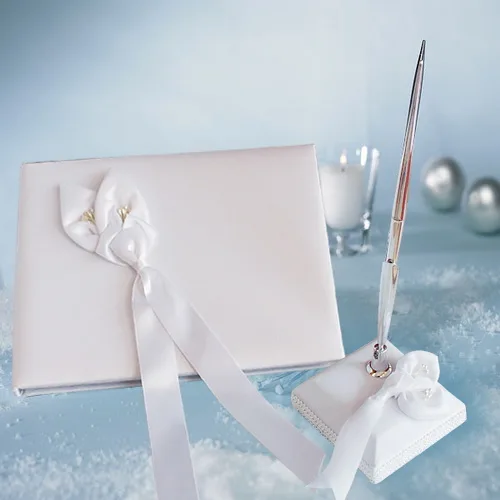Красивые кристаллы/бант/двойные сердца свадебный набор гостевых книг и ручек