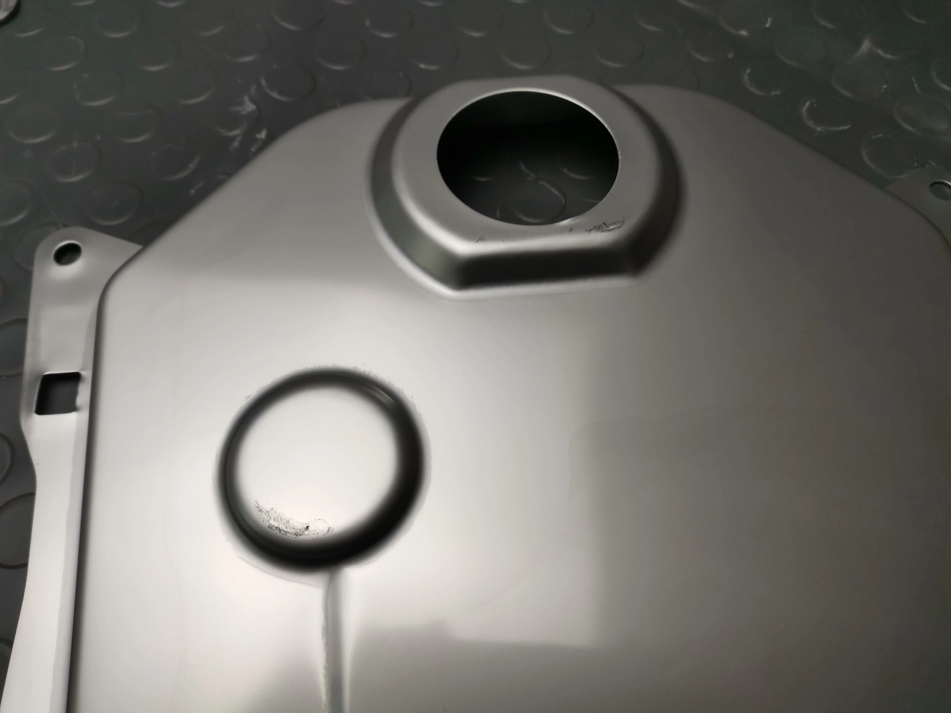 Stainless steel, straight down from the punch, without any appearance treatment,As a result, each piece gets a slight scratch and is repainted after the customer buys it