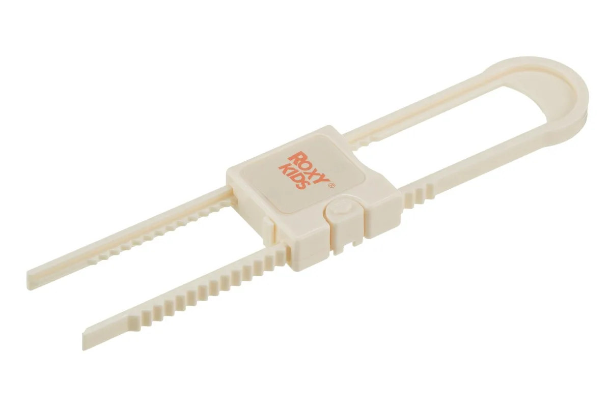 Главная задача родителей – защитить малышей от всего, что может нанести вред: опасные жидкости, острые углы, бактерии и далее по списку. Для того, чтобы сделать это было легче, и существует замок на дверцы от ROXY-KIDS. Замок фиксирует ручки между собой, что не позволяет ребенку прищепить пальчики и добраться до запрещенных предметов, таких как косметика, бытовая химия, лекарства и т.д. Имеет неброский дизайн, поэтому не привлечет дополнительного внимания ребенка. Для установки выдвиньте фиксатор из паза, потяните язычок наверх и, удерживая его, свободно снимите замок с зубчатой направляющей. Проденьте направляющую сквозь ручки шкафа/тумбы. Снова наденьте замок, удерживая язычок, и зафиксируйте его максимально близко к ручке дверцы. Отпустите язычок и задвиньте фиксатор, чтобы надежно закрыть замок.