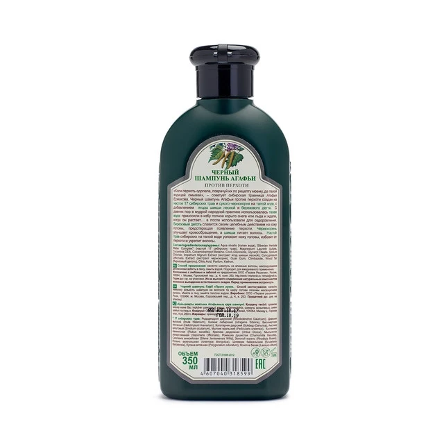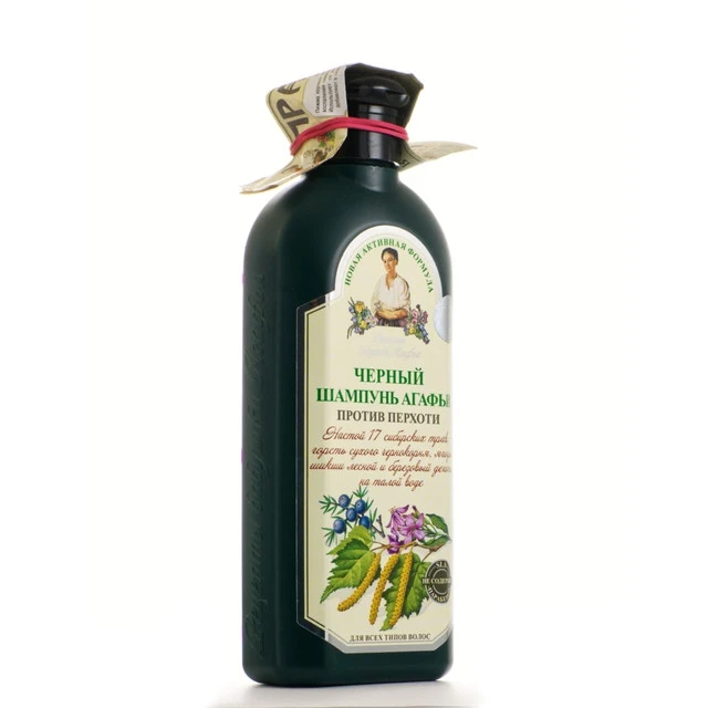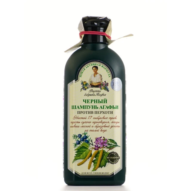 Black agafiya anti-dandruff shampoo is created on the desktop of 17 Siberian herbs and dry black root on tall water with the addition of Shikshya Berries Berries Berries and