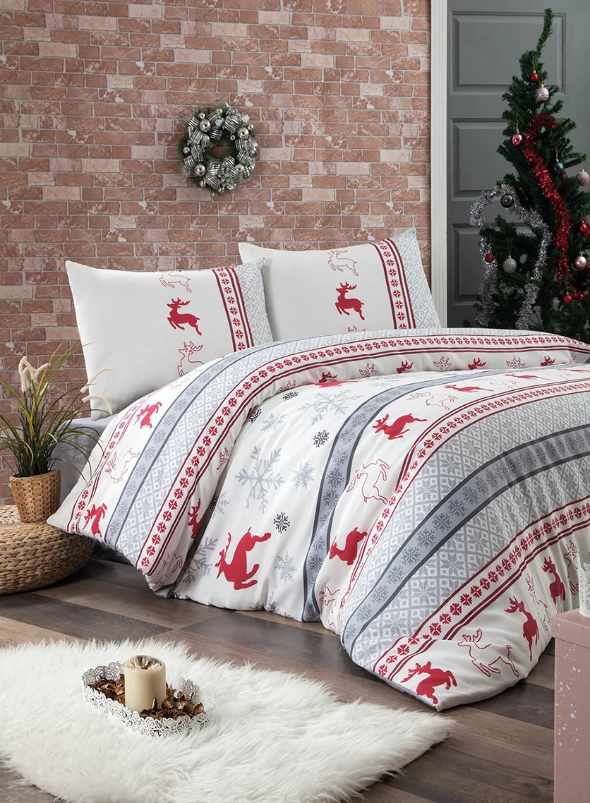 -Kumaş dokusu: %60 pamuk - %40 Polyester -Nevresim Ölçüsü: 200 x 220 cm -Çarşaf Ölçüsü: 220 x 240 cm -Yastık Kılıfı Ölçüsü: 50 x 70 cm -Paket içeriği: Çift kişilik nevresim, 2 adet yastık kılıfı ve çift kişilik çarşaf