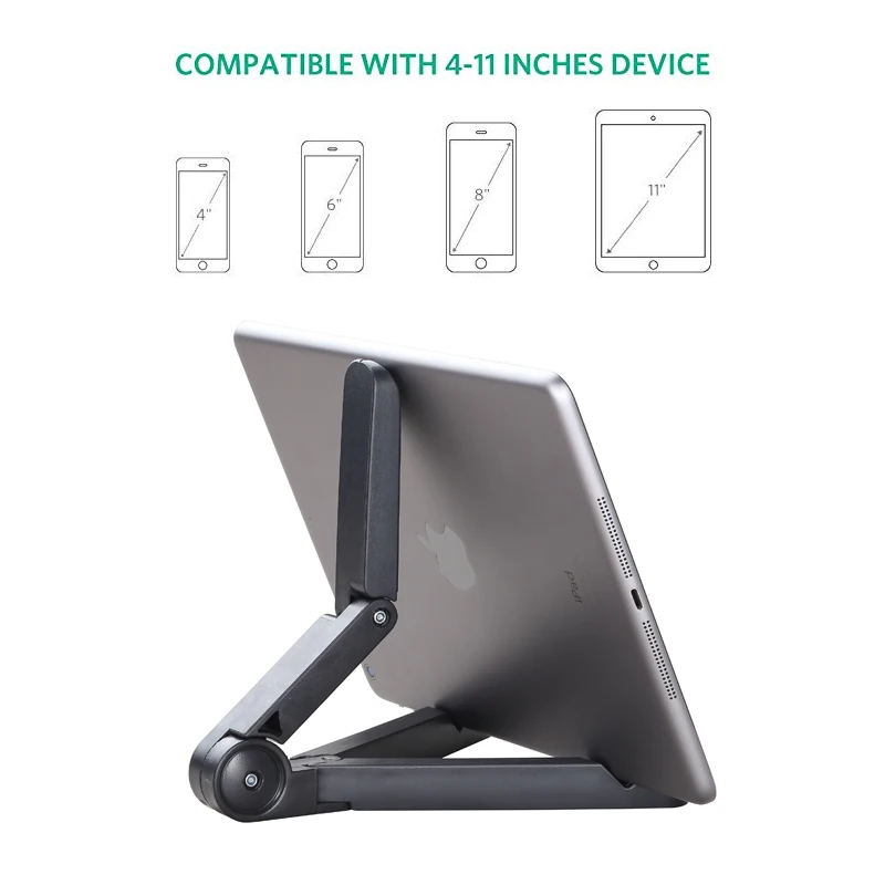 ◆ Регулируемая подставка для планшета имеет две вертикальные поворотные точки, чтобы разместить планшет или Е-ридер практически под любым углом, чтобы работать на вашем столе или поднос для спинки сиденья на самолете.