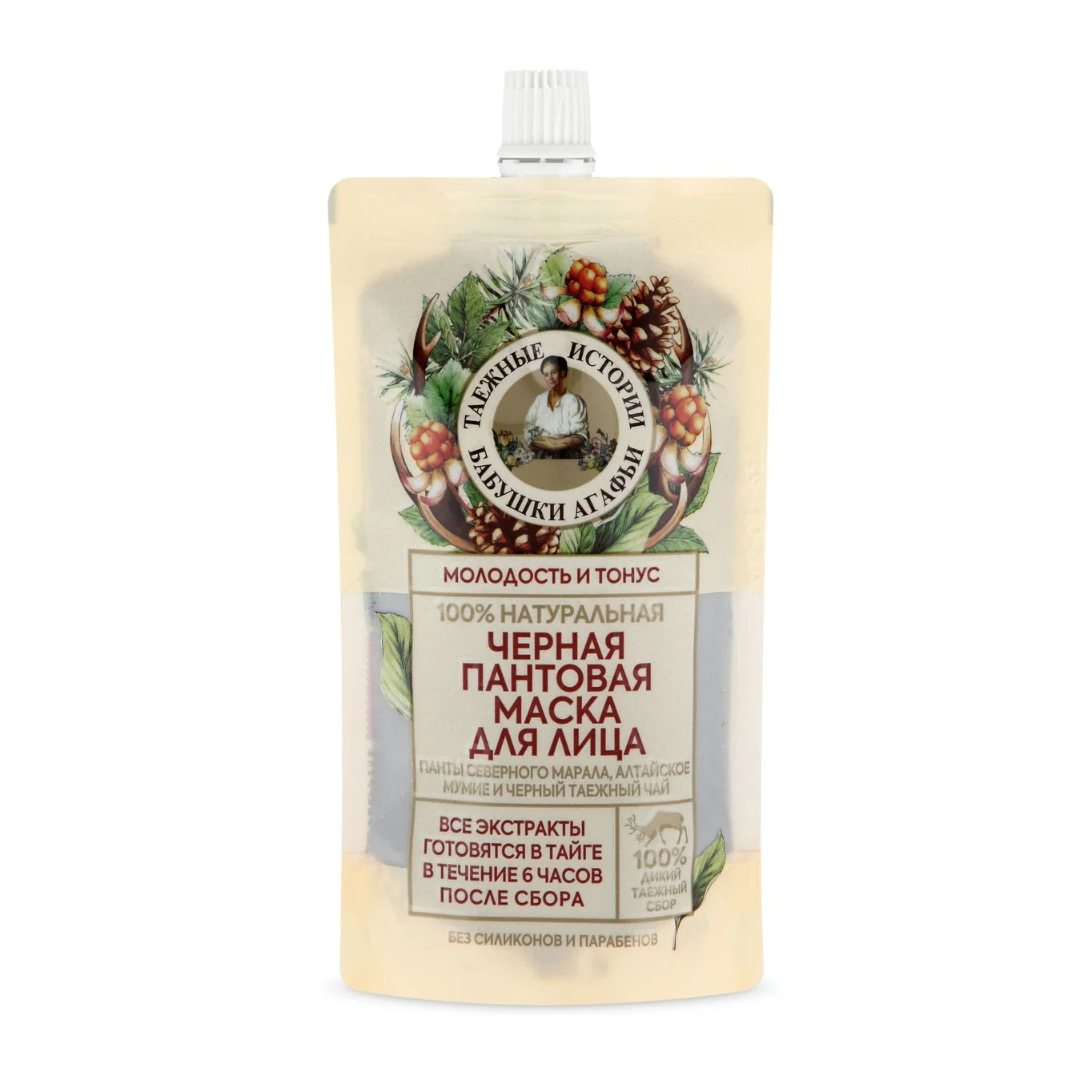 ЧЕРНАЯ ПАНТОВАЯ МАСКА ДЛЯ ЛИЦА - омолаживает и подтягивает кожу - глубоко питает кожу - осветляет и выравнивает тон кожи - устраняет морщины В НАШЕЙ ЧЕРНОЙ МАСКЕ ДЛЯ ЛИЦА «МОЛОДОСТЬ И ТОНУС» ТОЛЬКО НАТУРАЛЬНЫЕ ИНГРЕДИЕНТЫ: ПАНТЫ СЕВЕРНОГО МАРАЛА сертифицированные государственным хозяйством в Туве, содержат коллаген и эластин, более 30 минералов и микроэлементов, а также 20 аминокислот, которые поддерживают водно-липидный баланс и эффективно разглаживают морщины. Недаром панты марала называют эликсиром молодости! АЛТАЙСКОЕ МУМИЕ– богатый комплекс биологически-активных веществ, созданный самой природой, содержит макро- и микроэлементы, аминокислоты, пептиды и витамины, которые обладают мощным омолаживающим действием, питают и обновляют кожу, повышают ее упругость и эластичность ; ФЕРМЕНТИРОВАННЫЙ ЧЕРНЫЙ ТАЕЖНЫЙ ЧАЙ тонизирует и осветляет кожу, придает свежесть и здоровое сияние, насыщает кожу витаминами А, В, С, К, Р, РР, антиоксидантами, кофеином и полифенолами, необходимыми для поддержания молодости и красоты кожи.