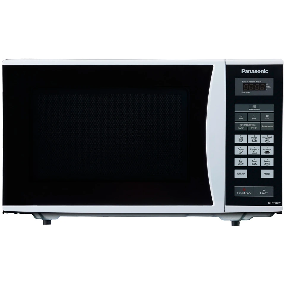 Микроволновая печь PANASONIC NN-ST342 – это отличный выбор для кухни, которой пользуется семья из нескольких человек. Внутренний объем в 25 литров позволяет готовить блюда значительного объема, разогревать или размораживать продукты. Внутренний поворотный стол имеет диаметр 28,5 см, а значит, вы можете использовать тарелки удобного размера. Микроволновка радует стильным дизайном, поэтому ее можно устанавливать как в закрытые, так и в открытые ниши в кухонной мебели.