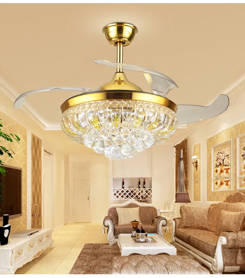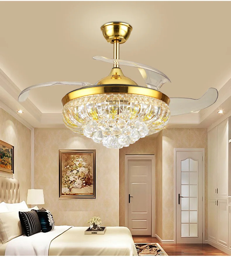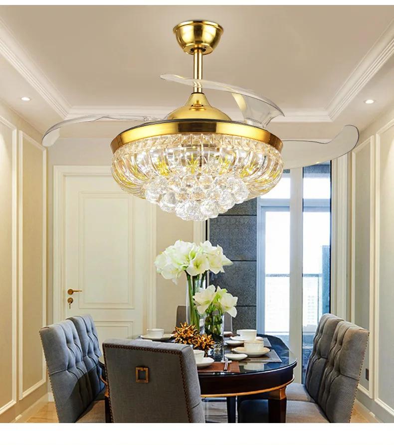 Европейский стиль, ресторанный вентилятор, светильник с дистанционным управлением, Золотой роскошный светодиодный, Кристальный, невидимый инвертор, потолочный вентилятор, светильник