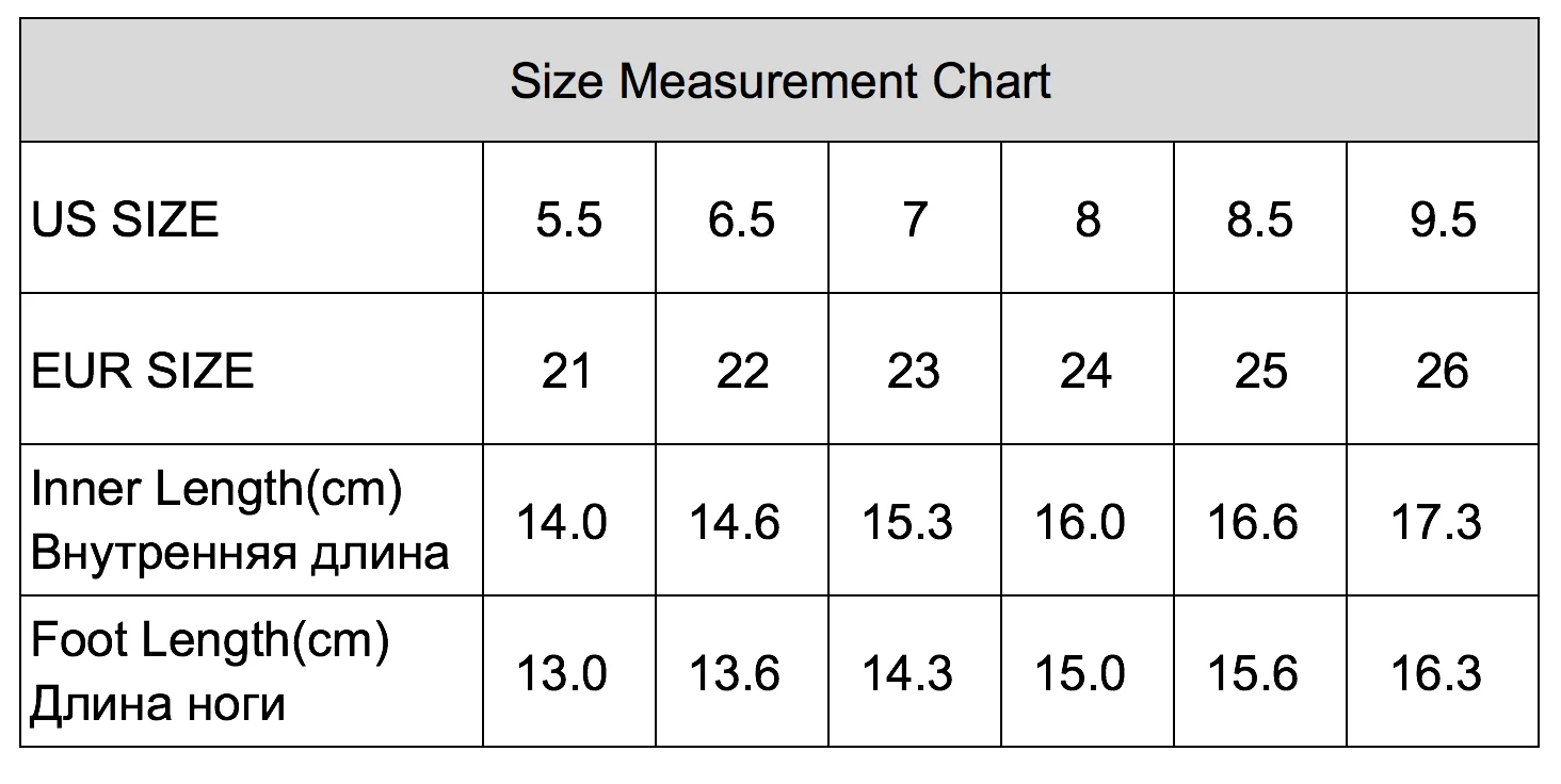 Пожалуйста, ознакомьтесь с таблицей размеров ниже. Выберите свой размер в соответствии с длиной стопы. Как только Найдите длину стопы, которая вам нужна, затем найдите соответствующий размер США/Евро для размещения заказа.
