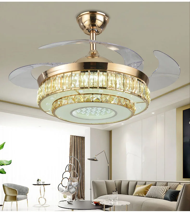 Новый Невидимый вентилятор светильник гостиная, столовая спальня потолочный вентилятор-светильник американский преобразования частоты Хрустальная люстра