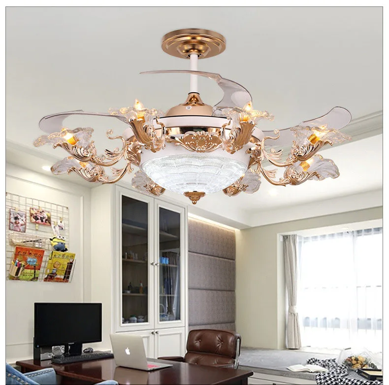 Европейский роскошный Невидимый вентилятор, лампа с дистанционным управлением, электрический вентилятор, лампа 8 европейских позолоченных вентиляторов, лампа для гостиной