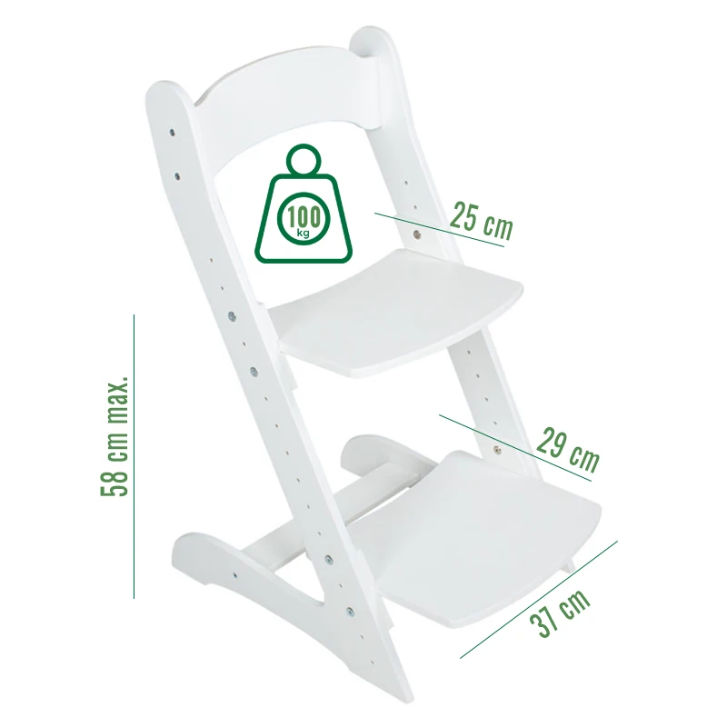 Растущий стульчик «Компаньон» подходит для детей ростом от 80 до 160 см. Сиденье и подножка регулируются по высоте. Стул растёт вместе с ребёнком, выдерживает вес до 180 кг.