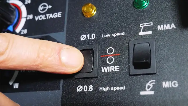 настройка скорости подачи проволоки: быстрая / медленная, в зависимости от диаметра используемой проволки