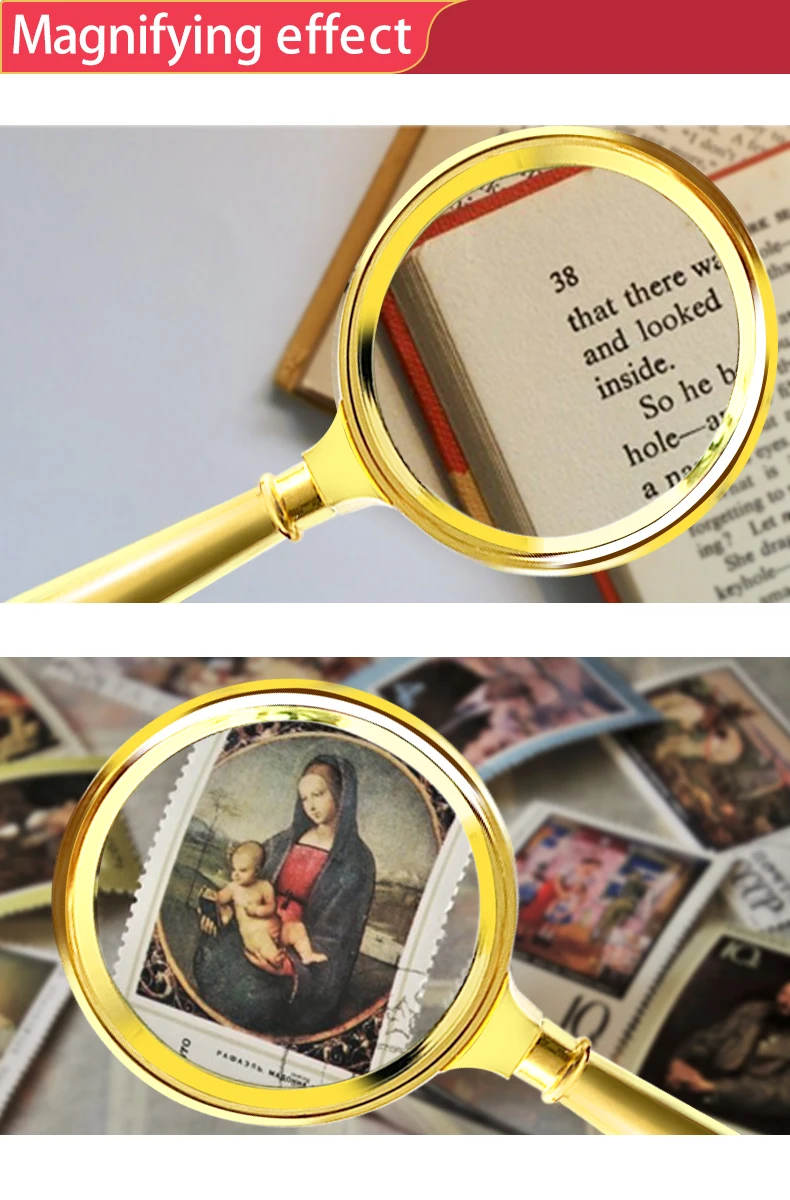 Цвет: Золотой или бронзовый Материал: металл, стекло Увеличение: 10x Особенности: 1. Функция-это портативное увеличительное стекло 10x предназначено для дополнительной четкости и четкости, подходящей для просмотра небольшой печати или предметов. 2. Светильник фокусировки-может использоваться для фокусировки светильник, например, для концентрации солнечного излучения, чтобы создать горячее место на фокусе для запуска огня. 3. Стильный, эргономичный и легкий-вы можете просто скользить в кармане и использовать. Наше увеличительное стекло предназначено для ювелиров, техников по ремонту, наружных буффов, а также для тех, кто хочет читать или наблюдать крошечные детали текста или частей. Вы легко читаете маленький текст дома или изучаете карты во время их нахождения. 4. Применимо-идеально подходит для увеличительных ювелирных изделий, живописи, резьбы, ручной работы, штампов, шитья, ремонта небольшого размера, чтения мелкой печати на бутылках и так далее. 5. Оптическое стекло объектива-это 10х лупа для чтения с высоким коэффициентом пропускания, приносит четкое изображение и искажение без увеличения. 6. Идеальный подарок-это увеличительное стекло с коробкой будет шикарным подарком на выбор, идеальный подарок для ваших друзей, пожилых людей или семьи. Примечание: 1. Пожалуйста, учитывайте разницу в 1-2 мм из-за ручного измерения, спасибо. 2. Из-за разницы между различными мониторами изображение может не отражать фактический цвет изделия