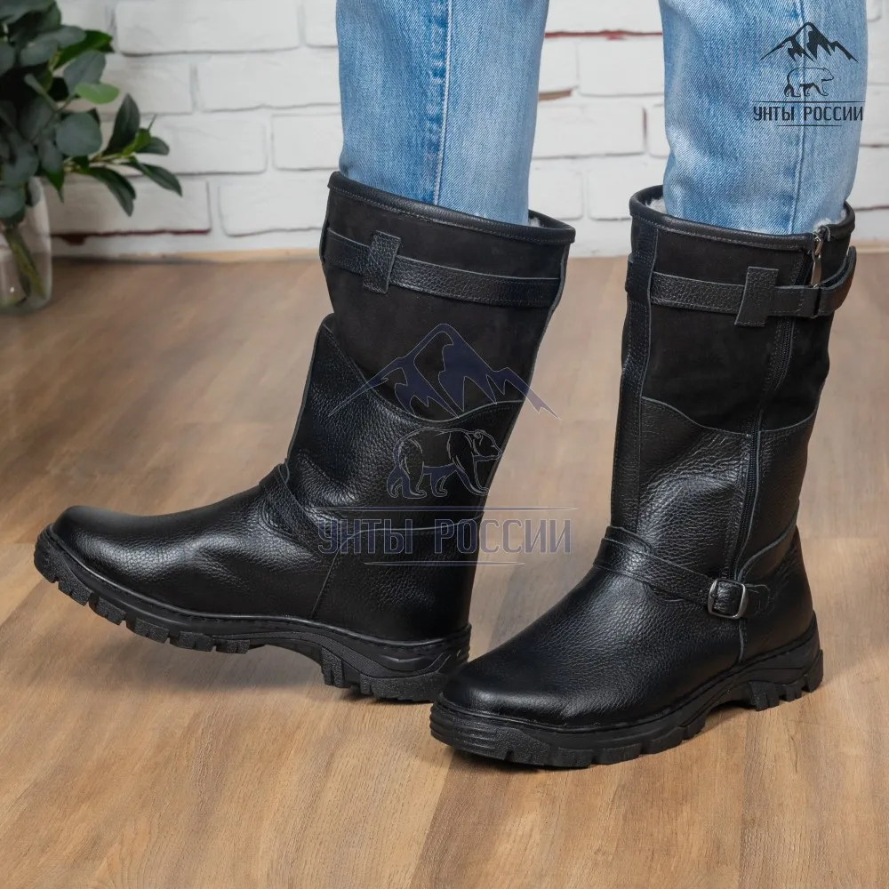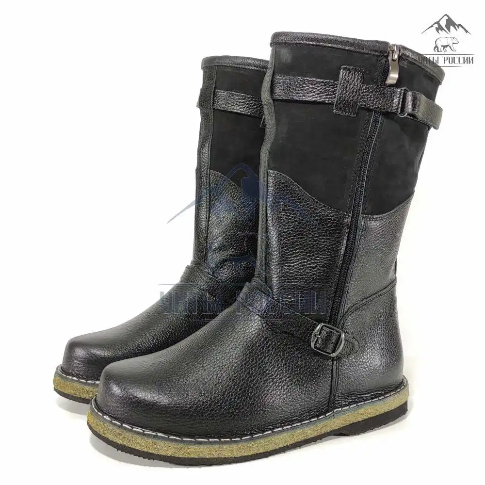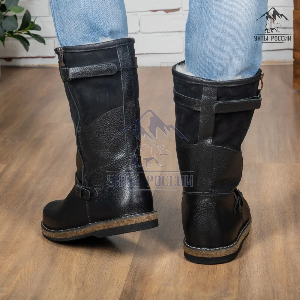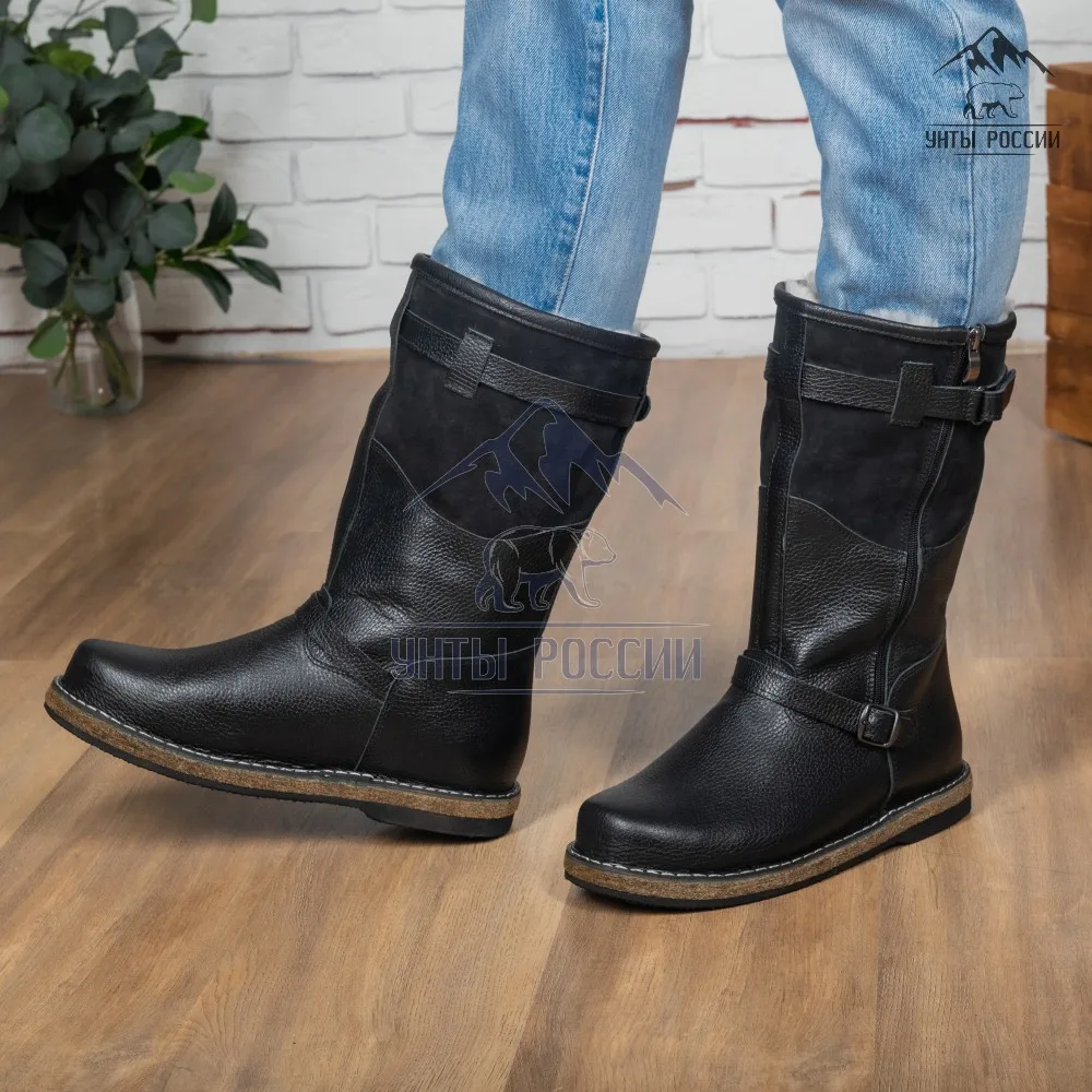 Монголки мужские натуральные черные с замком, литая подошва, "Унты России"