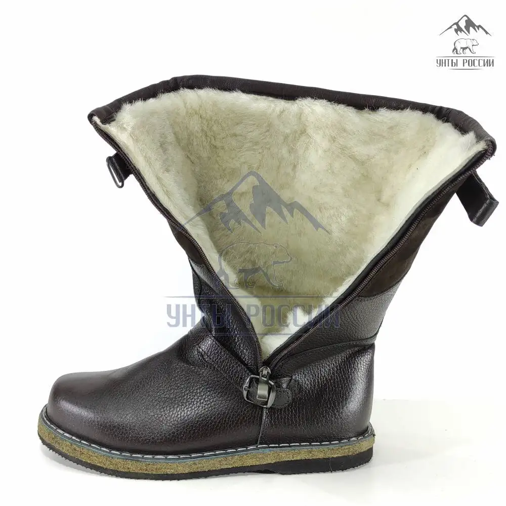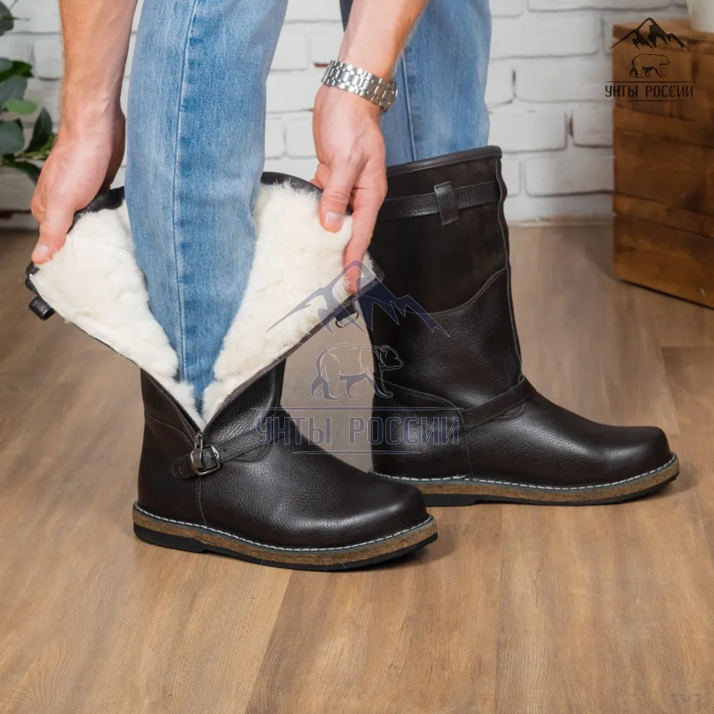 Монголки мужские натуральные коричневые с замком, литая подошва, "Унты России"