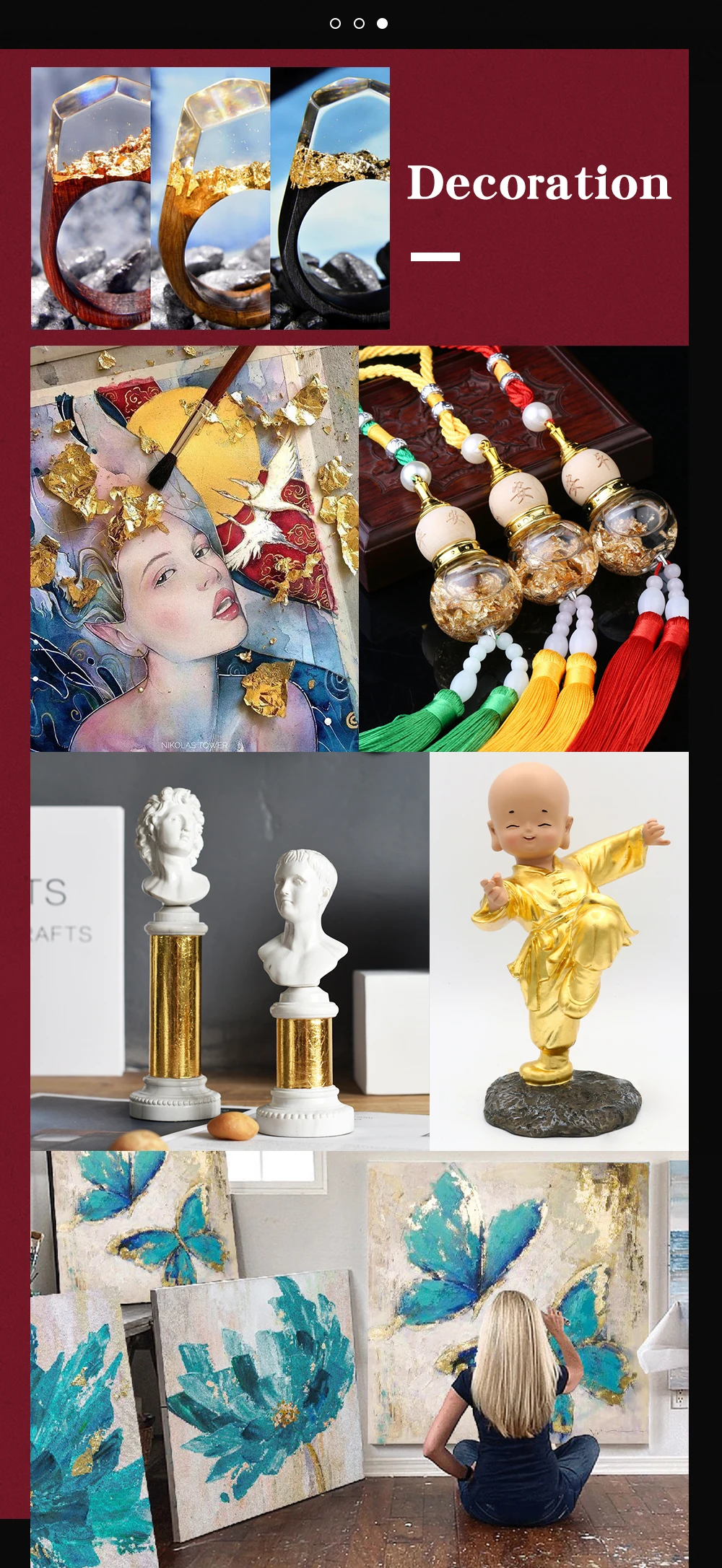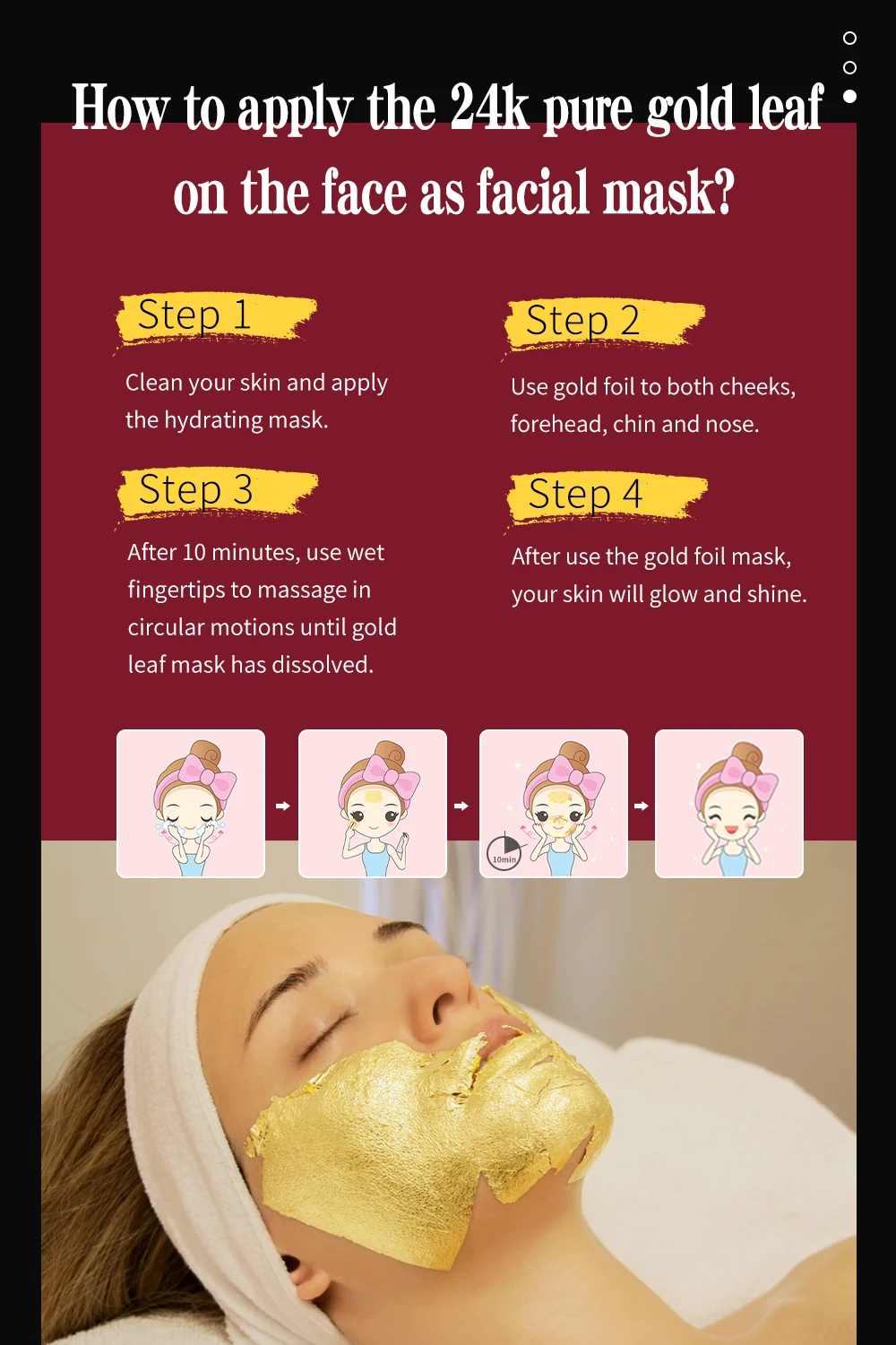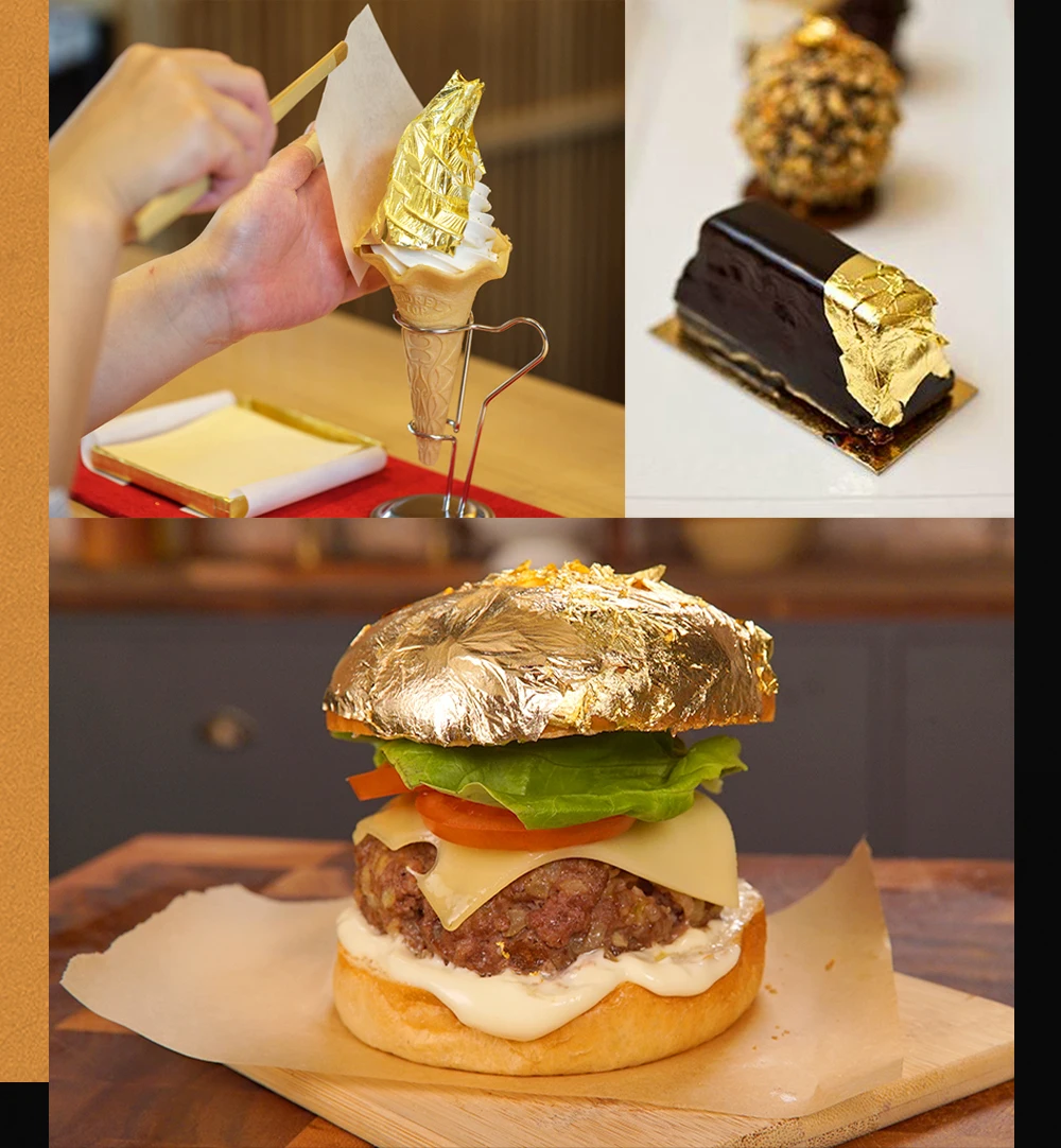 1. Нанесение на лицо в качестве маски для лица. Измельчить в хлопья и смешать в ваш ежедневный уход за кожей и макияж. 2. Наш настоящий золотой лист безопасен, пожалуйста, не беспокойтесь об украшении пищи. Вы можете использовать кисть, чтобы добавить настоящий золотой лист в пирожные, хлеб, трюфели, печенье, шоколад, кондитерские изделия. 3. Вы можете использовать золотой лист 24K в искусстве и ручной работе, которая дает фантастическую золотую текстуру: живопись, скульптура, керамика, керамика, скольжение, подарки ручной работы, сделай сам, дизайн мебели, И стильные модные аксессуары. Высокое качество: наши листы с золотыми листьями премиум класса-24k, самый высокий процент карата, который гарантирует чистую форму золота, и у нас есть Сертификация FDA и MSDS в США.