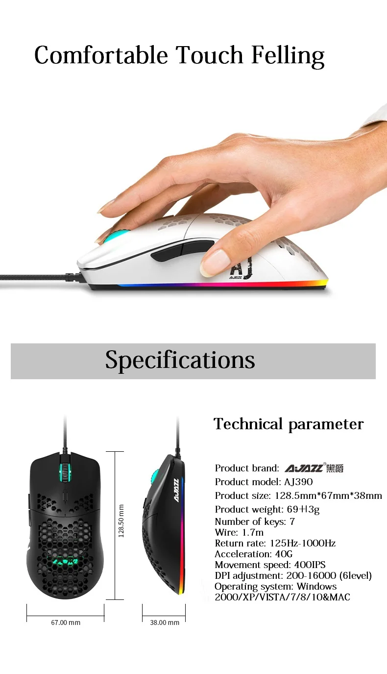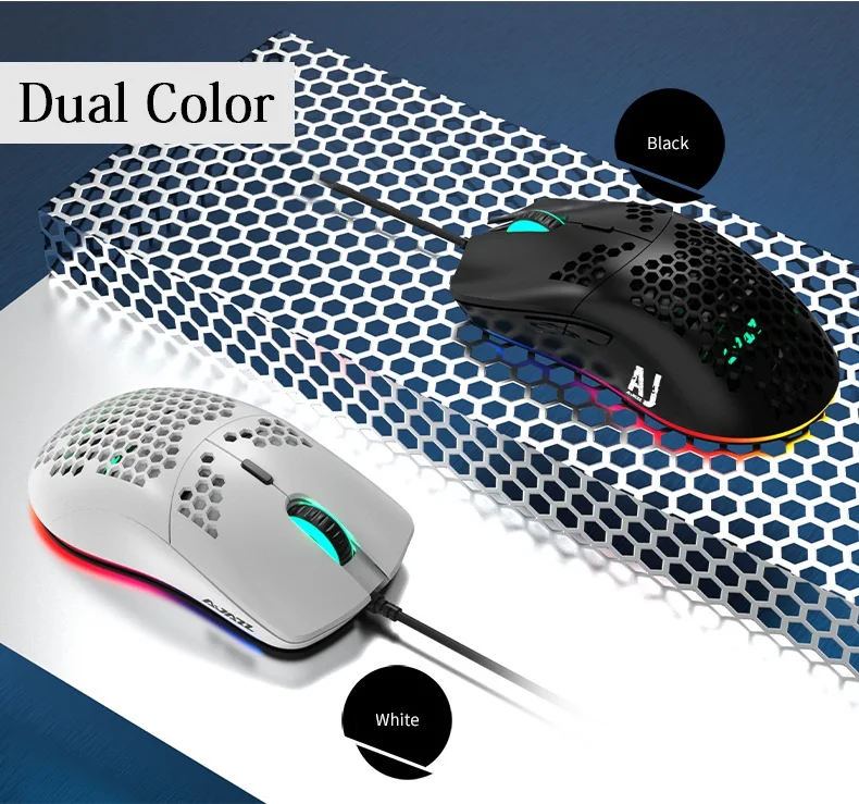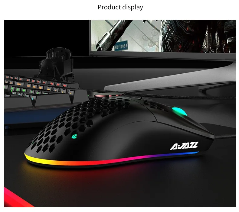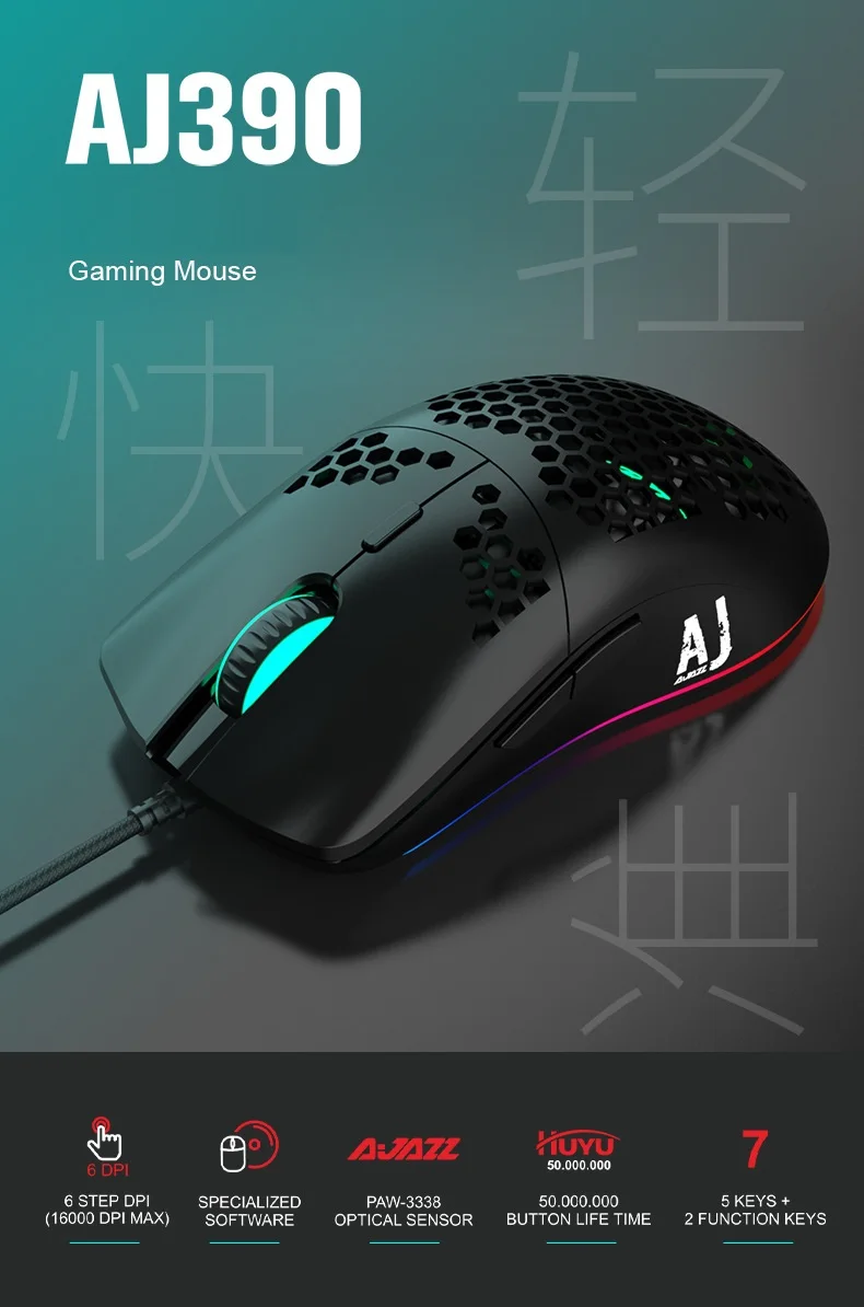 Новый светильник AJAZZ, проводная мышь 10000DPI 16000DPI, игровая мышь с отверстиями, 7 клавиш, Регулируемая 6 DPI мышь для ноутбука