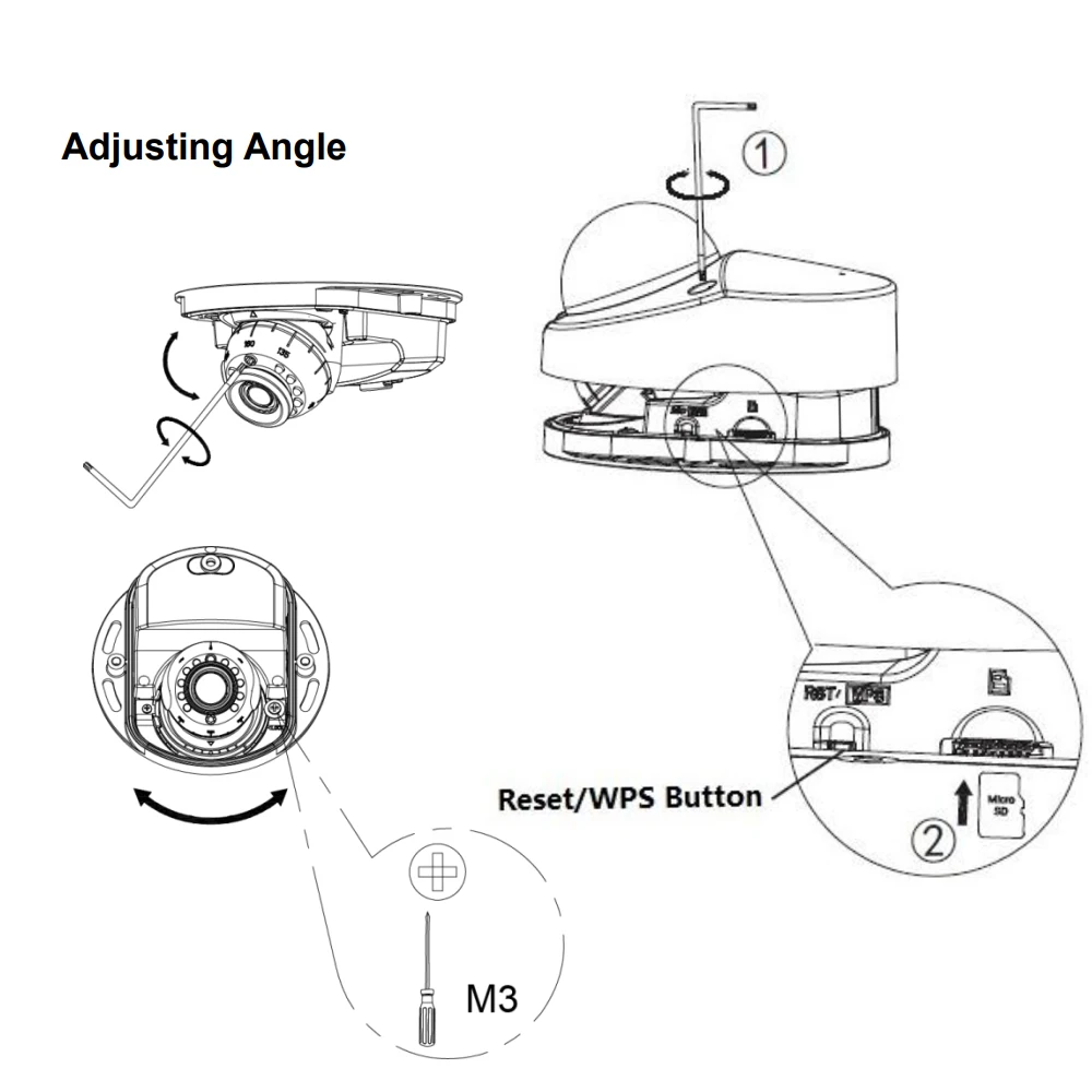 Диапазон панорамирования/наклона/вращения: по горизонтали: от-30 до 30 °; По вертикали: от 0 до 80 °; Вращение: от 0 до 360 °