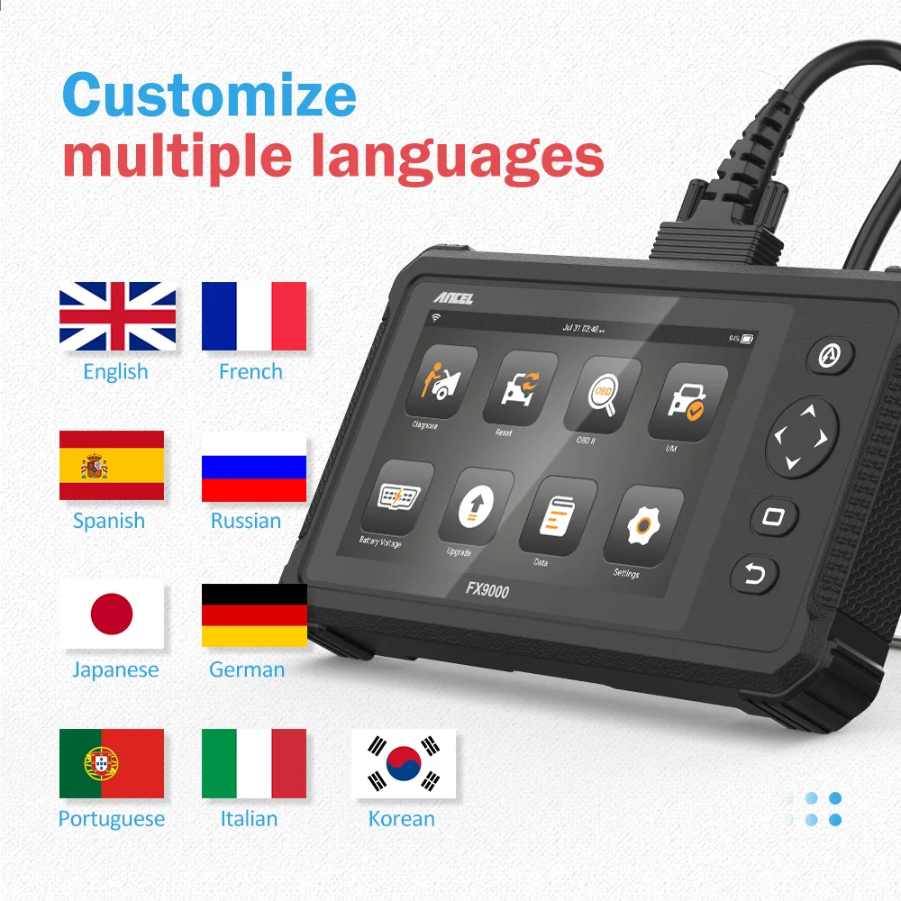 Ancel FX9000 OBD 2 Автомобильный сканер Поддержка языков: