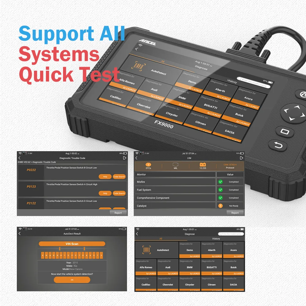 Ancel FX9000 OBD2 сканер поддерживает полную систему диагностики