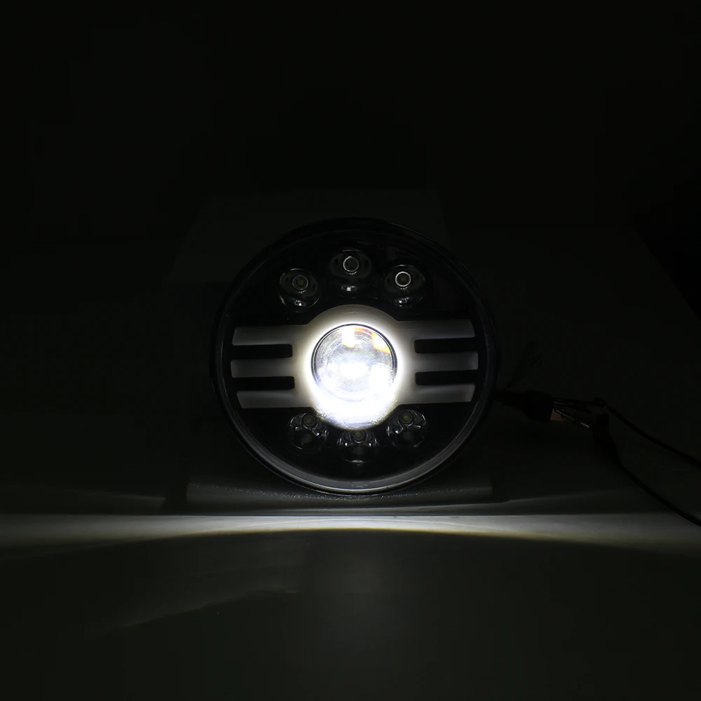 Технические характеристики Размер: диаметр 7 дюймов Температура: 6500K ~ 7000K (белый) Powr: 45W Степень водонепроницаемости: IP67 Рабочее напряжение: 10-30 В постоянного тока Материал: литой под давлением алюминиевый корпус Материал линз: поликарбонат Посылка 2 шт. x светодиодный головной убор