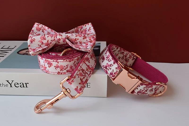 Изготовленые на заказ металлические пряжки Выгравированный ошейник для собаки 1,5 м поводок для питомца галстук-бабочка Чихуахуа розовое золото Регулируемый ошейник для питомцев товары заводская цена цветы 01