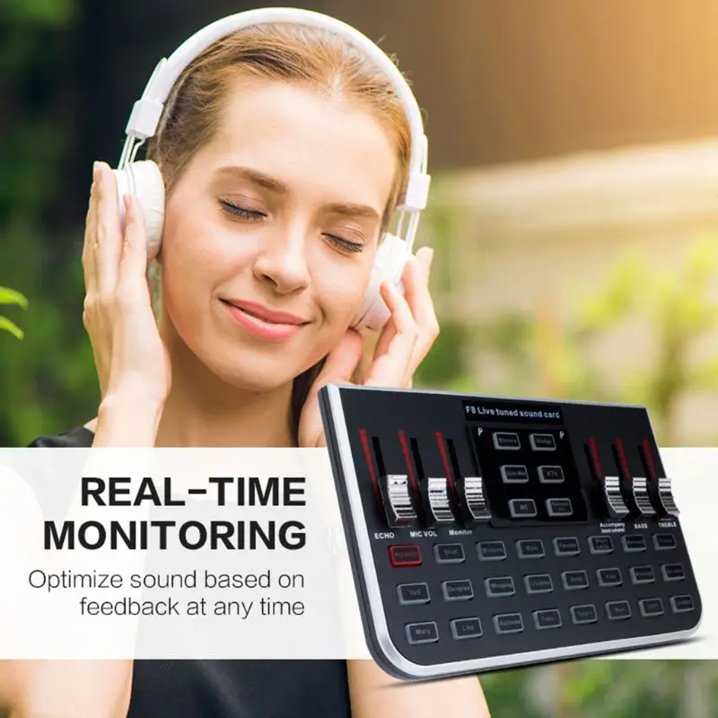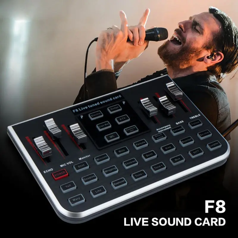 1 Set F8 Live Sound Card English Version 6 Modes Voice Mixer Microphone Webcast Entertainment Streamer for Phone PC