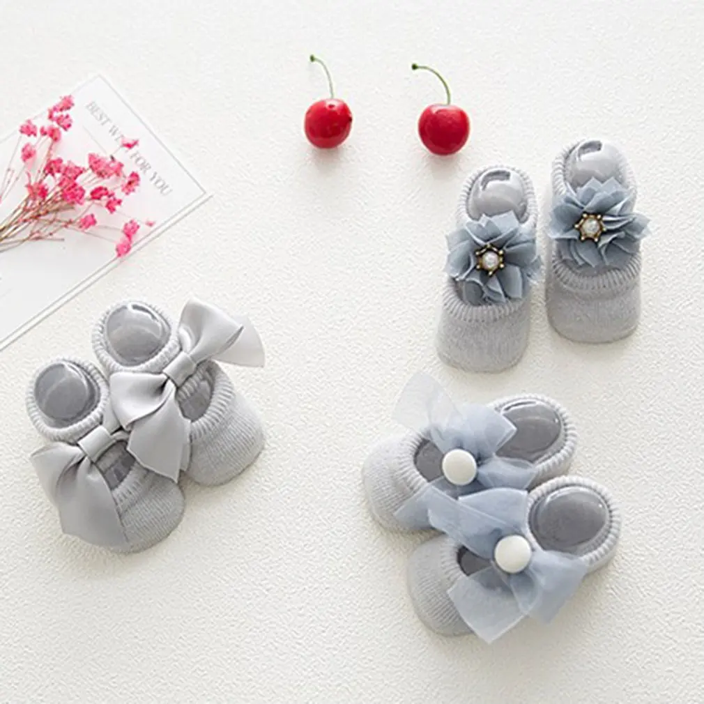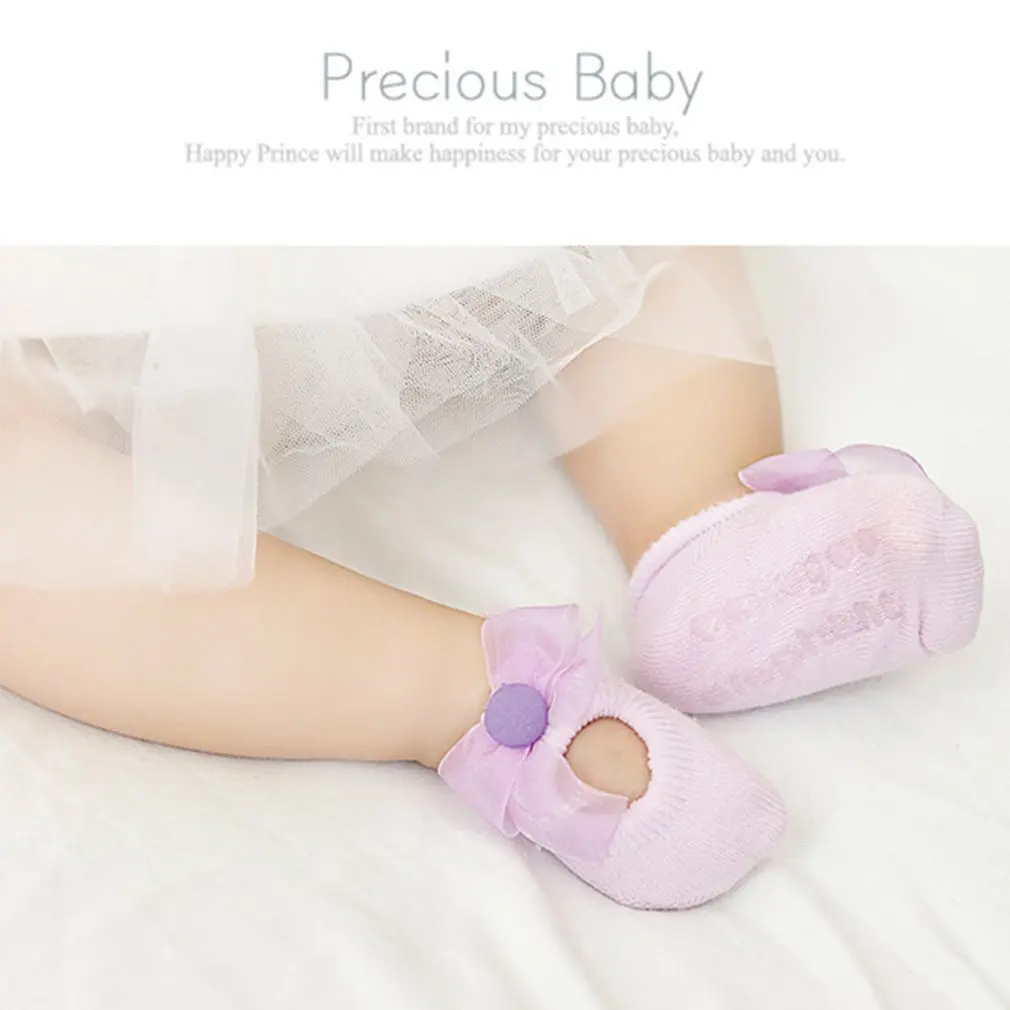 Носки для малышей носки до щиколотки для маленьких девочек от 0 до 24 месяцев хлопковые нескользящие носки с кружевным бантом и оборками
