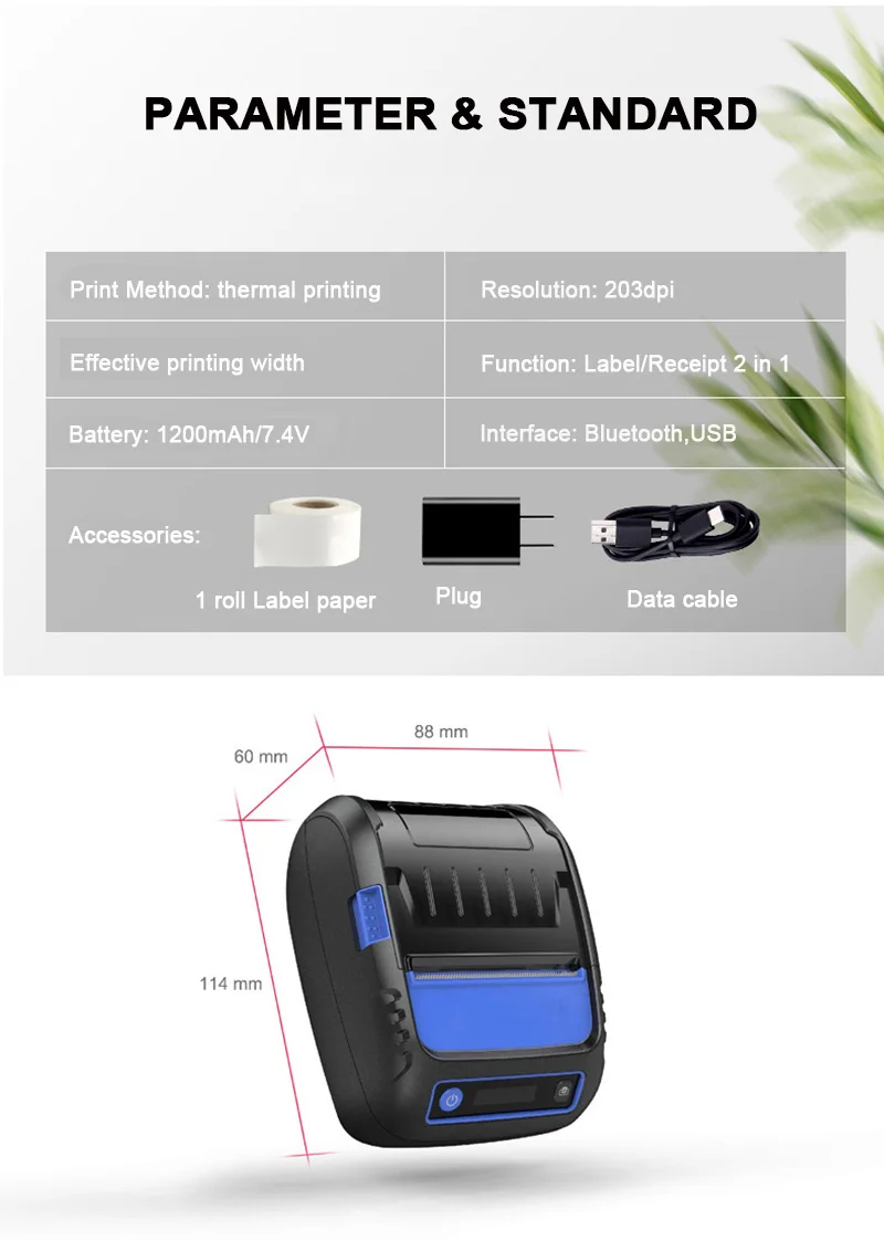 Термопринтер 2-дюймовый квитанция/этикетка 2 в 1 POS принтер 58 мм Bluetooth Android/iOS/Windows для малого бизнеса