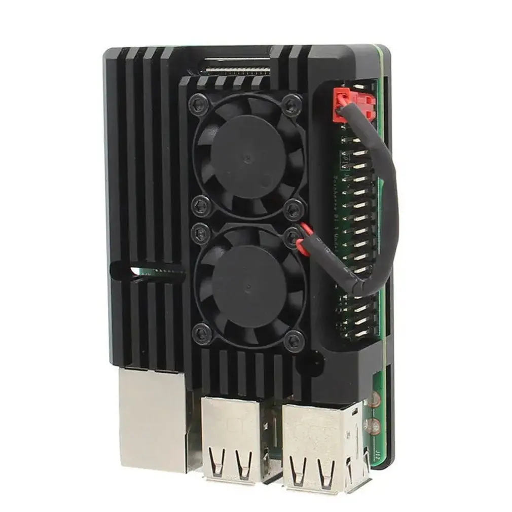 Raspberry Pi 3/Raspberry Pi 4 Алюминиевый чехол с двойным охлаждающим вентилятором металлический корпус черный корпус для RPI RPI 4B/3B/3B +