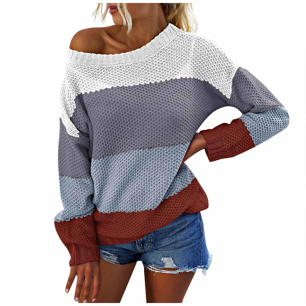 Женский модный свободный контрастный удобный свитер с длинными рукавами
