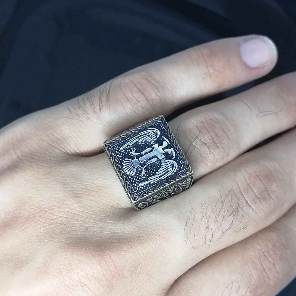 925 пробы Серебряное кольцо с двуглавым орлом ручной работы