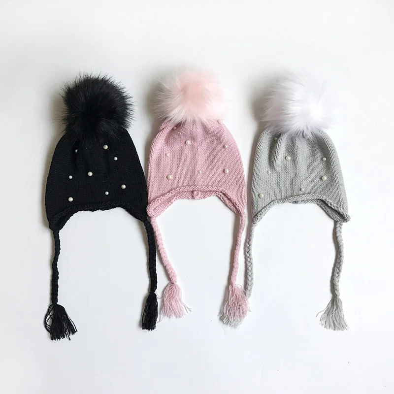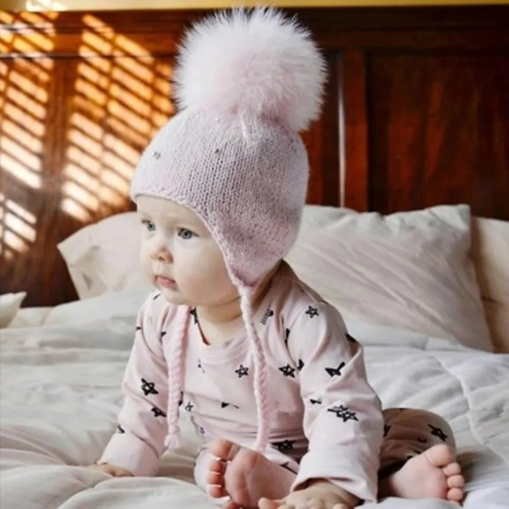 Вязаная шапка; Милые шапки; Сезон осень-зима; Детская кашемировая Шапка; Вязаная Шерстяная Шапка; Шарообразные наушники для маленьких девочек и мальчиков; Головной убор