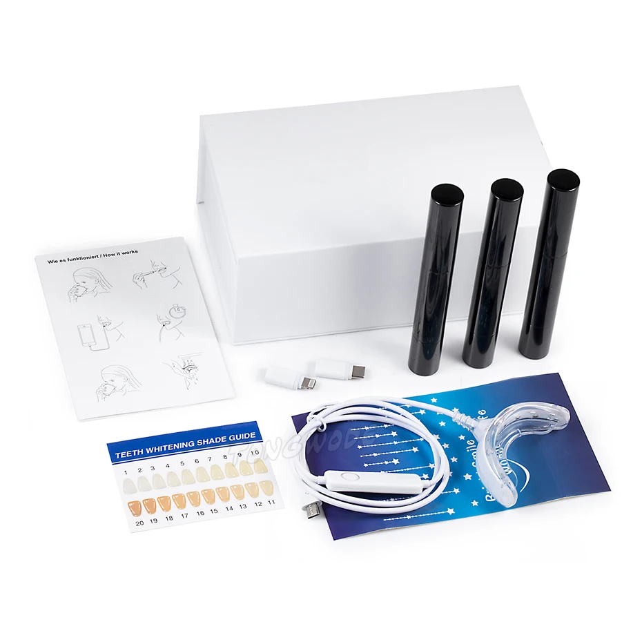 Дропшиппинг отбеливание зубов комплект без логотипа 3 гелевые ручки Портативный Таймер Отбеливание зубов Светильник ускоритель с роскошной подарочной коробкой