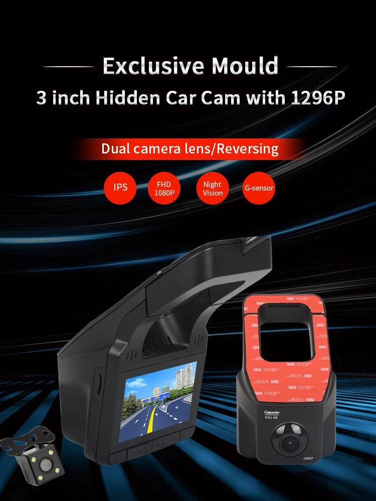 Процессор NOVATEK 96658 Сенсор SONY IMX 323 6G Размер экрана 3 дюйма IPS экран Разрешение 1920*1080P @ 30 кадров в секунду (FHD 1080P спереди) 640*480P @ 25 кадров в секунду (VGA сзади) WIFI совместим с Android/IOS Батарея без Батарея Супер конденсатор с алюминиевой крышкой, поддерживается Реверсивный поддерживается Кабель подключения Скрытая TF карта максимальная поддержка 32 Гб