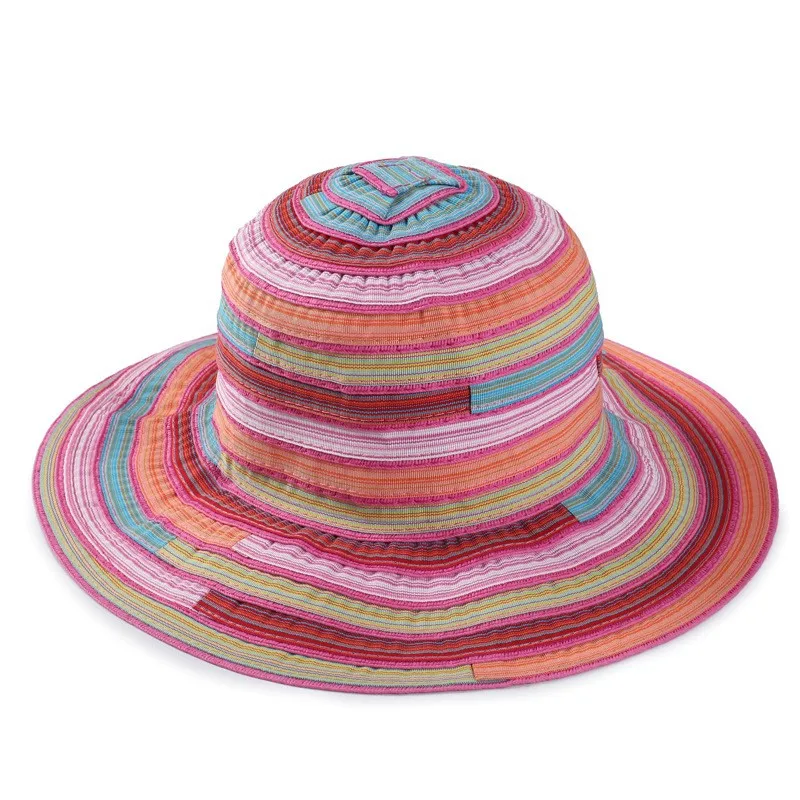 Панама, шляпа в рыбацком стиле, полосатая Солнцезащитная шляпа, складная идиллическая пляжная шляпа для отдыха, смешанные цвета, Повседневная модная шляпа с большими полями