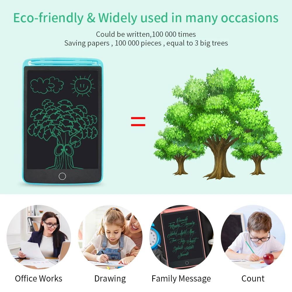 Название продукта: 8,5 ''ЖК-дисплей доска для записей Материал: LCD + ABS Дисплей: гибкий жидкокристаллический Цвет: розовый, синий Чистая Вес 0,142 кг Время письма> = 100 тысяч раз Батарея: сменный Cr2032 3V 210 мА-ч Сертификат: CE, RoHS, FCC
