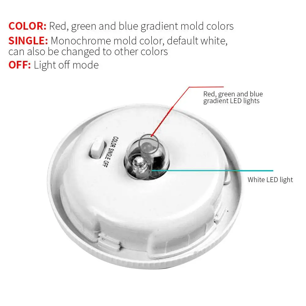 Светильник: белый шарик лампы, цветной шарик лампы (красный, зеленый и синий градиент), может быть переключен переключателем