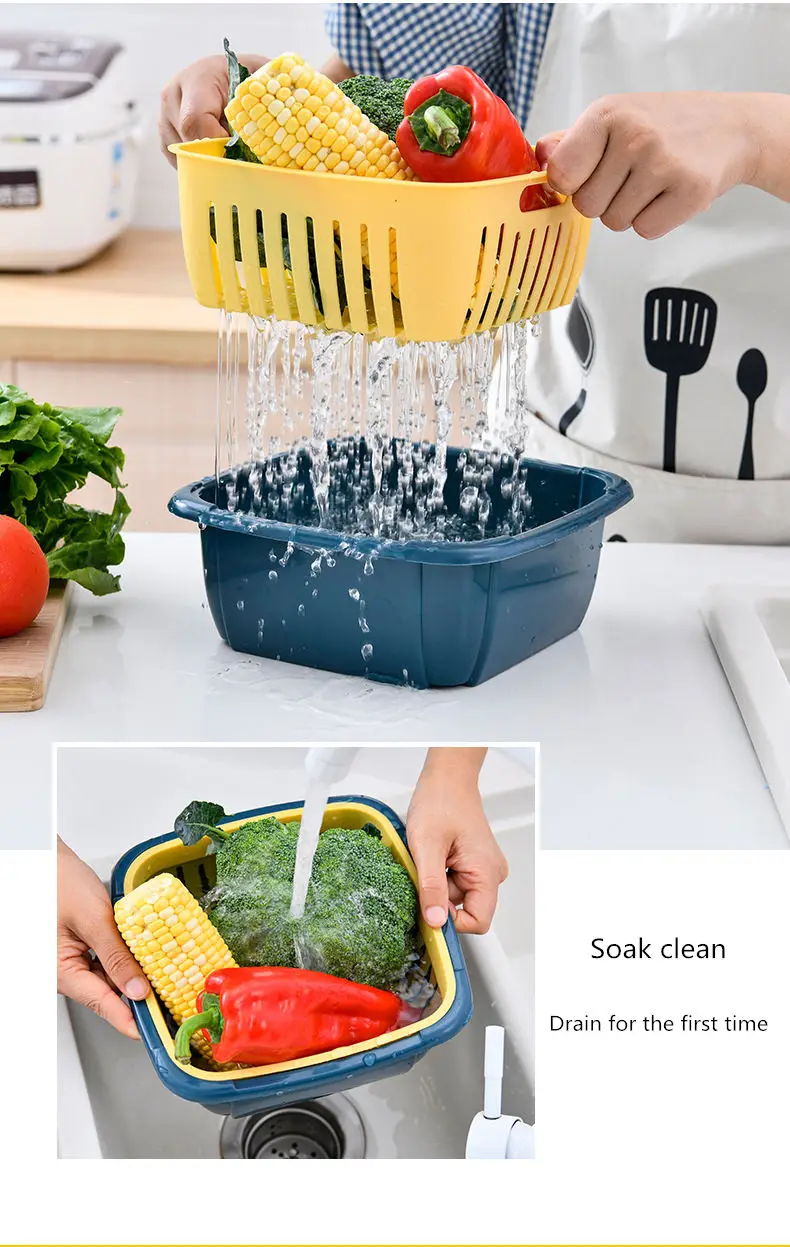 2 в 1, закрытый сеткой слив с крышкой для хранения холодильника, коробка для хранения свежести, многоцелевая корзина для хранения овощей и фруктов для кухни