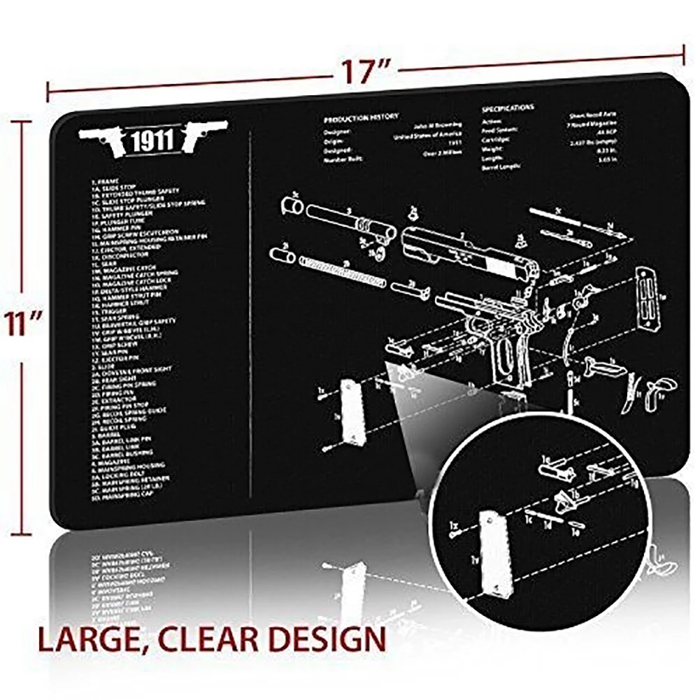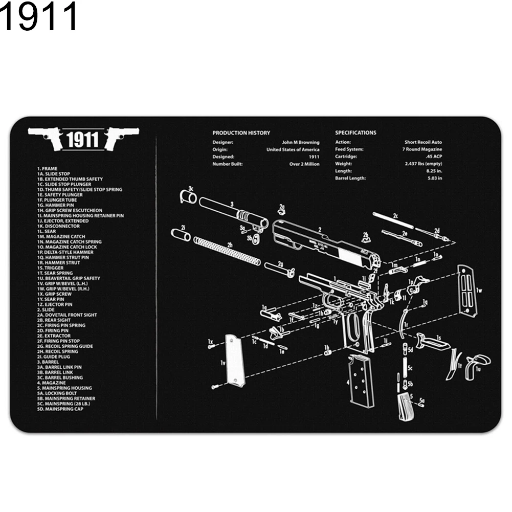 Простота в использовании: Этот 1911 коврик для чистки пистолета поставляется с обзором истории 1911, а также простой схемой деталей, составляющей 1911.