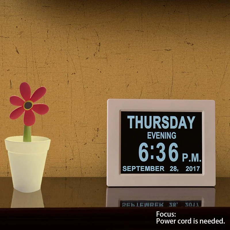 [Большой Sn дисплей]-8-дюймовый цифровой будильник с высоким разрешением четко определяет время, дату, месяц. Достаточно ясно, чтобы смотреть на время далеко.