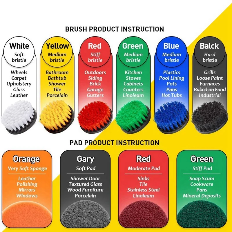 Экономия времени: устали от скучной бытовой чистки? Попробуйте щетки для очистки щеток и чистящих колодок, которые крепятся к любой аккумуляторной дрели или ударному драйверу, станьте мощным инструментом для очистки. Получите упрямую работу по очистке быстрее и добьетесь более глубокой очистки, безусловно, хороший партнер для вашей домашней уборки. (Дрель не входит в комплект)