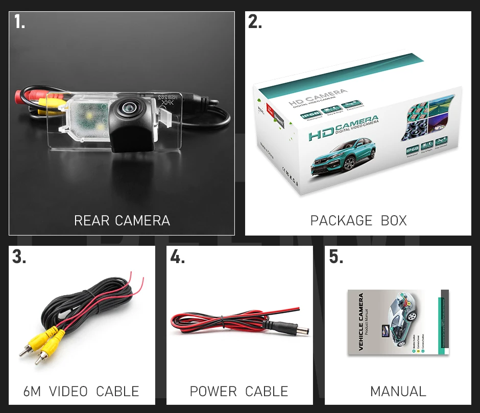 • Не нужны интерфейсы CANBUS или OBD, встроенный модуль треков заднего хода камеры, просто подключите питание.