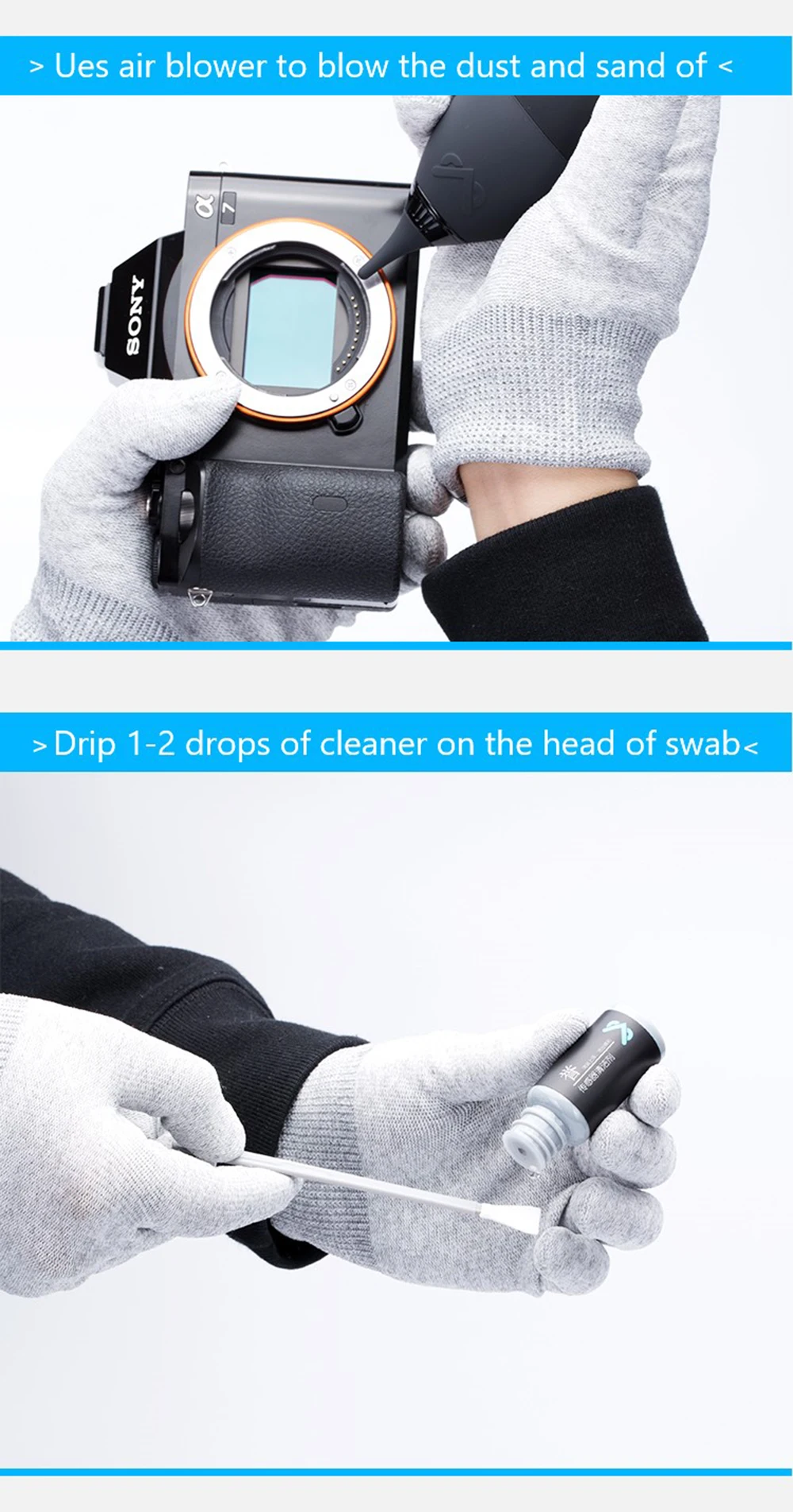 Перед очисткой DSLR убедитесь, что мощность аккумулятора выше 80% (для предотвращения Отражатель или затвор от падения из-за недостаточной мощности и блокировки очистки Инструмент, который может повредить камеру); Прежде чем очистить датчик беззеркального Камера с 5-осевой анти-функция дрожания, батарея должна быть удалена, чтобы убедиться, что Устройство полностью отключено. Для более желаемого эффекта очистки выберите Достаточно освещенная среда с меньшим количеством пыли и чистого воздуха.
