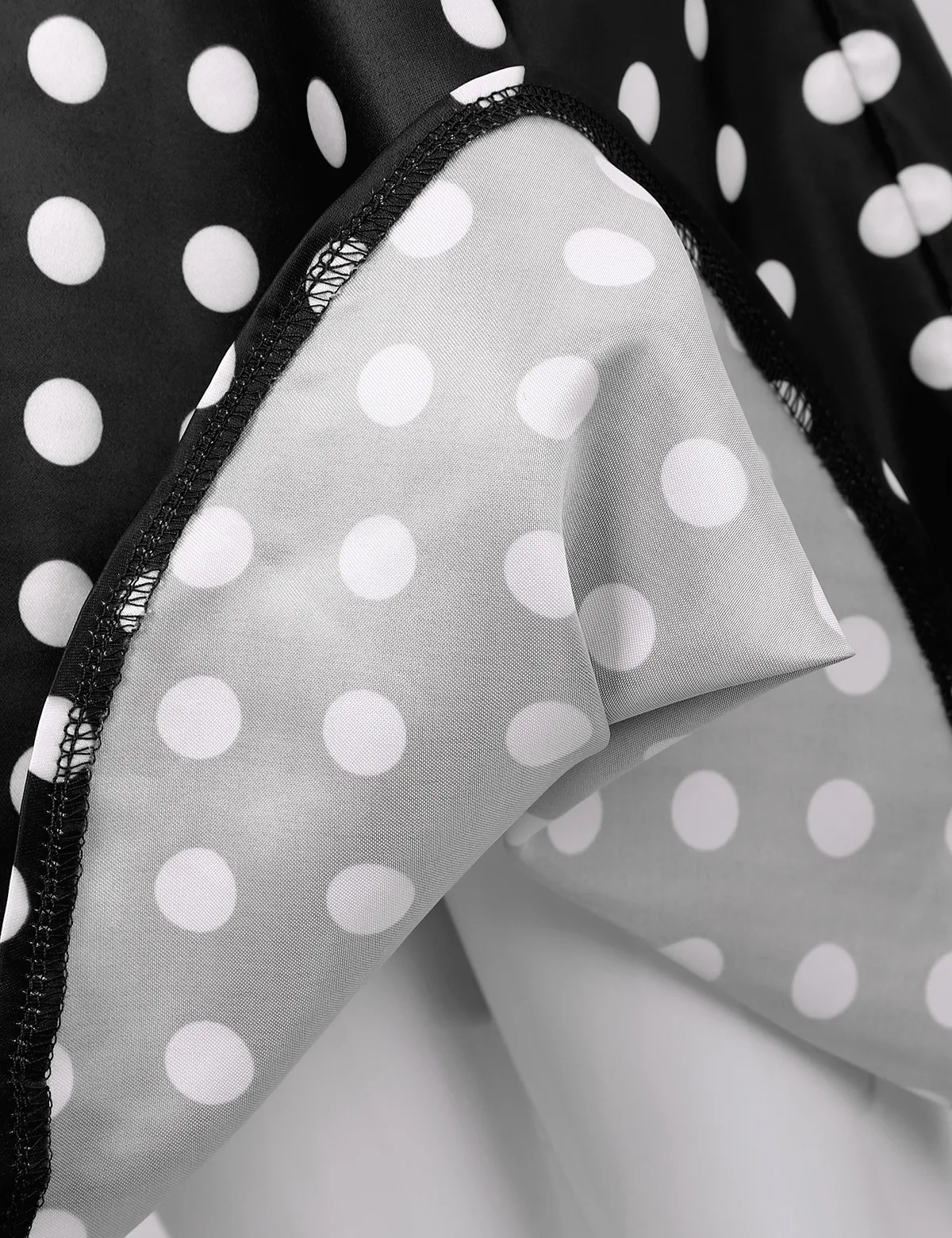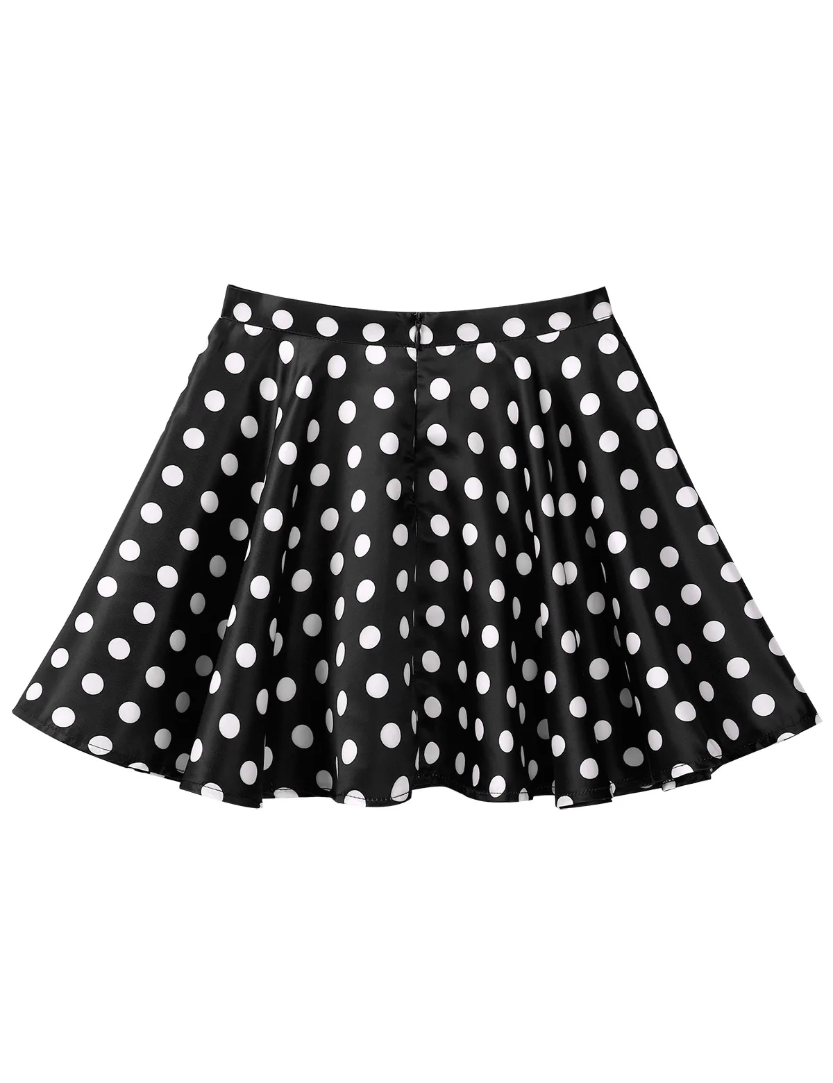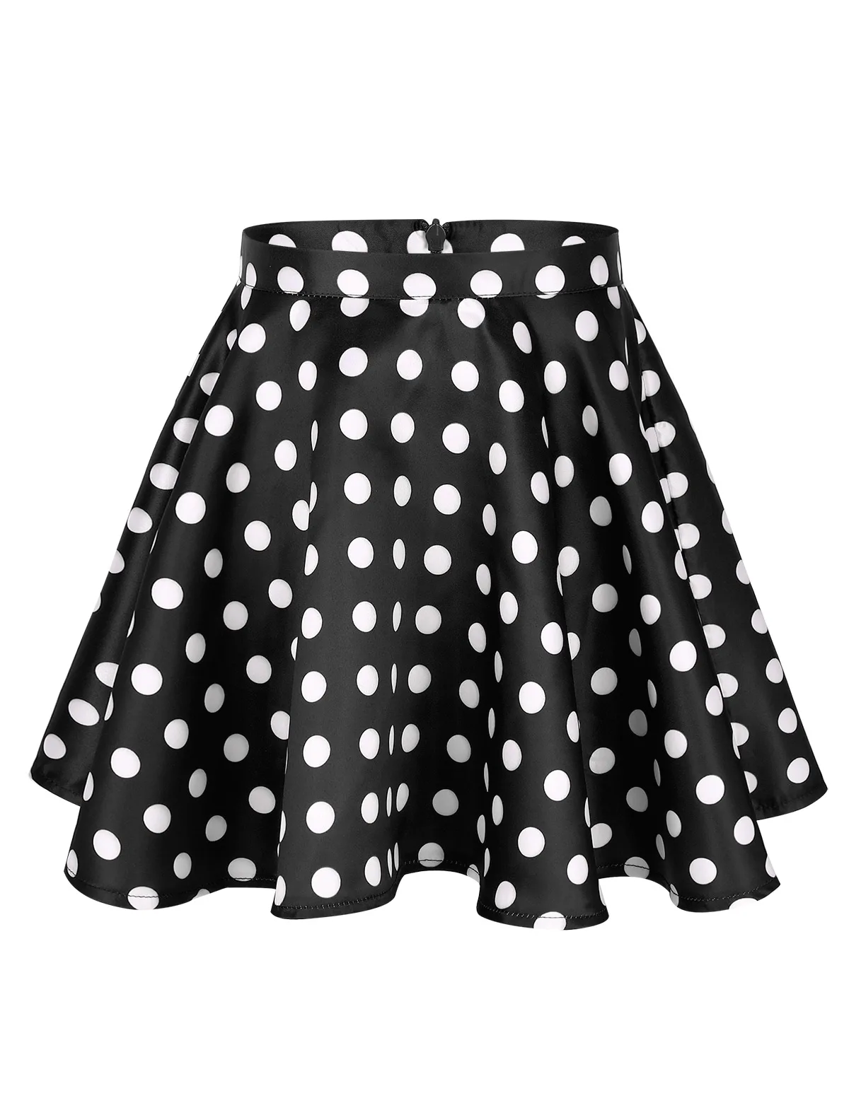 Расклешенная юбка с широкими кругами и застежкой-молнией сзади для удобства одевания. Узор в горошек.