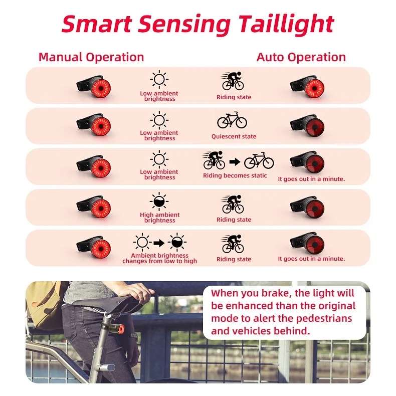 Велосипедный умный задний светильник