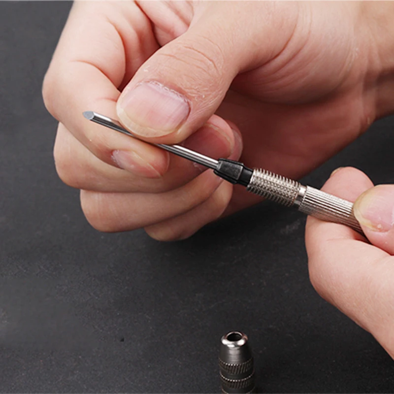 1 x ручка, треугольник 3 мм x 1, плоская 3 мм x1, правая косая 3 мм x 1, круглая 2 мм x 1, круглая 1,5 мм x 1
