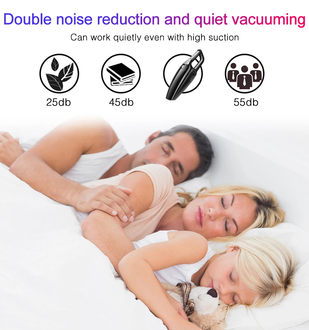Универсальные аксессуары, аксессуары с различными насадками щетки, могут очищать каждый уголок автомобильного сиденья, зазоры, напольные коврики, сильное всасывание в багажник секунд для очистки, могут поглощать все виды мусора, монет, водяные пятна и т. д., высокая мощность 120 Вт, автоматический регулирующий двигатель, При длительном использовании не нагревается, хорошая устойчивость, низкий уровень шума, подавление шума, тихий, 4 метра кабель-удлинитель, более удобный в использовании.