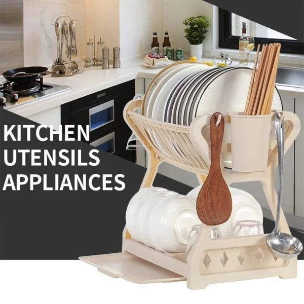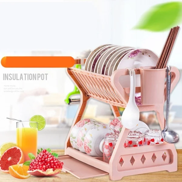 Эта кухонная сушилка для посуды изготовлена из высококачественного материала, утолщена и практична. С двумя Многоуровневая стойка обеспечивает больше места без затрат больше столешницы, что делает его очень удобным. Держите его горизонтально на шкафу и кухонной столешнице.