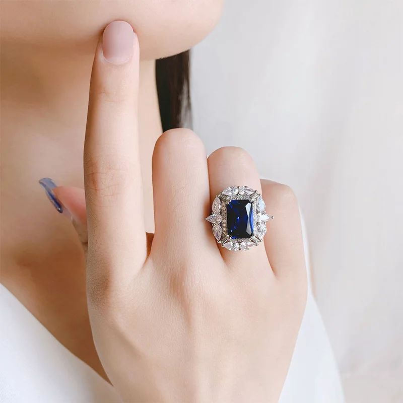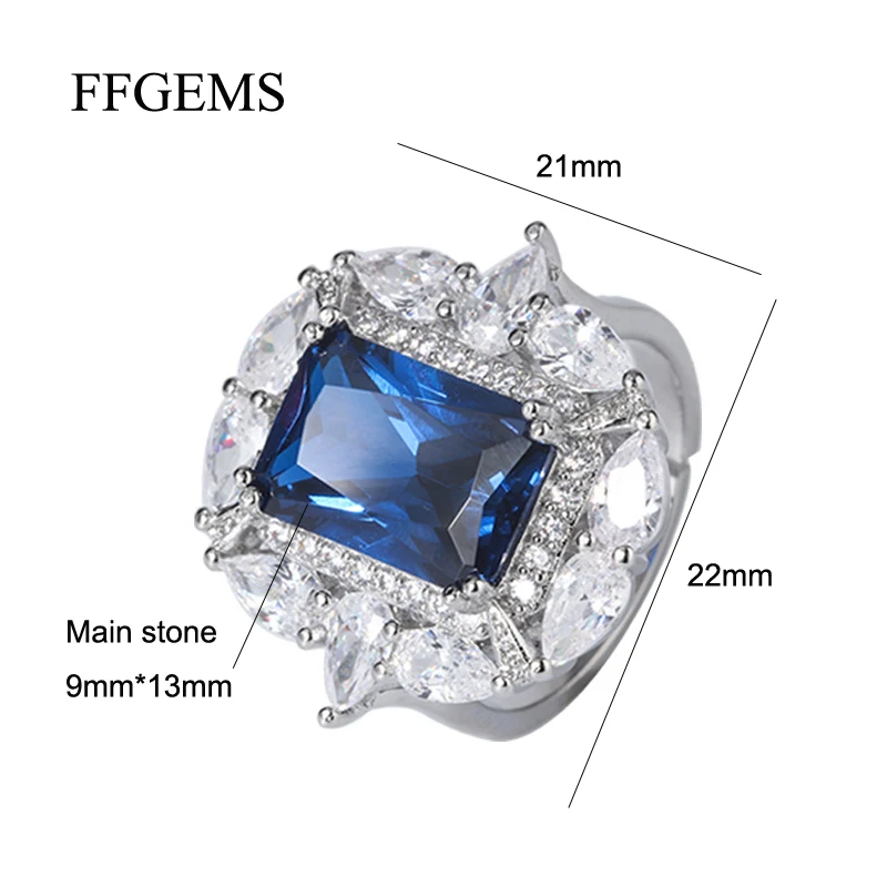 FFGems драгоценные камни аметист серебряное кольцо синий сапфир кольцо серебро 925 ювелирные изделия Аквамарин Кольца для женщин обручальные большие кольца