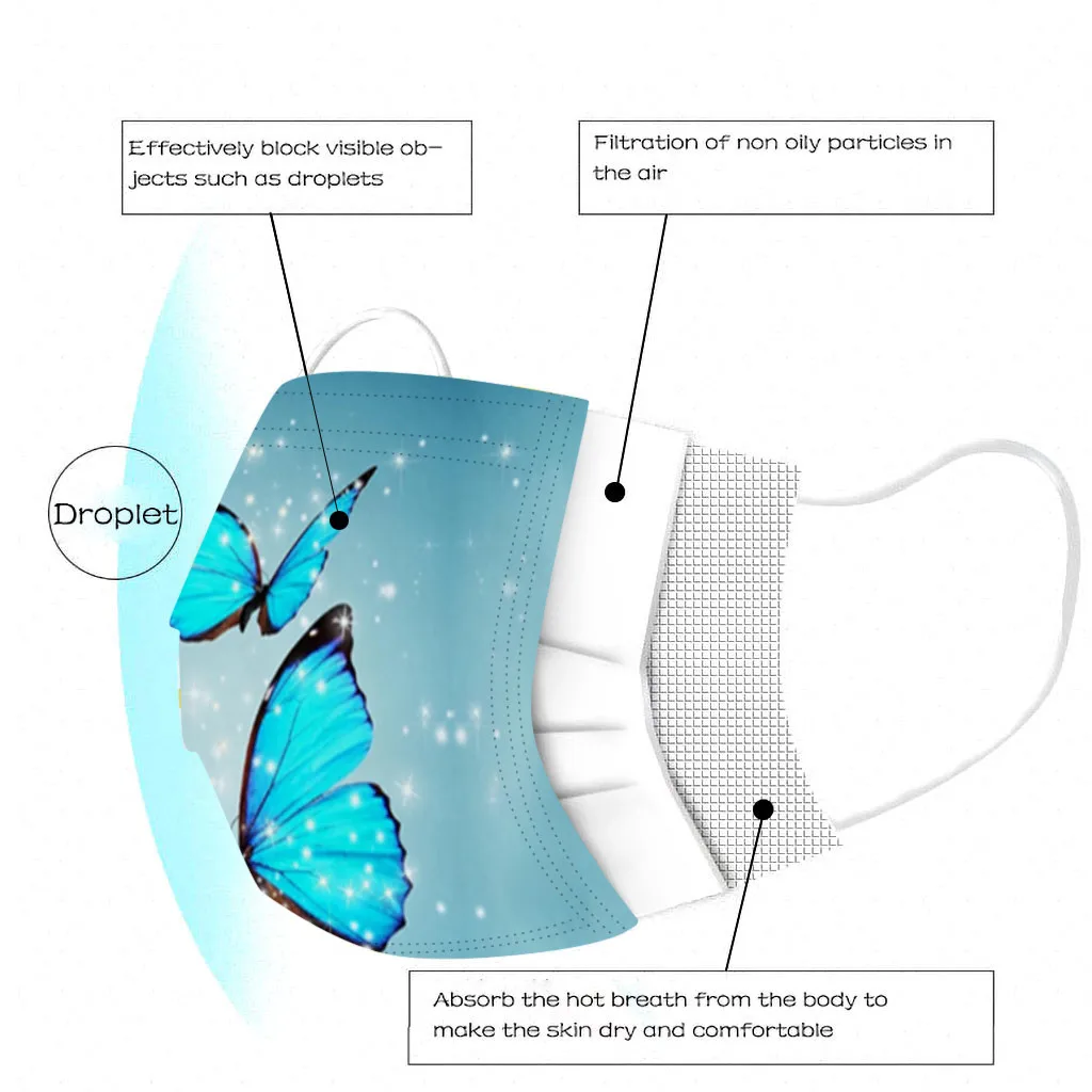 3 слоя Нетканая одноразовая маска изготовлена из 3 слоев нетканого материала, он безопасен для здоровья и безопасный для вас, чтобы использовать. Дышащий материал и милые узоры, что делает его полезным и модным. Специальный 3 слоя из нетканого материала, дизайн, обеспечивает некоторые меры защиты от пыли, автомобильный отходящий газ, пыльцу и т. Д. Эластичная петля уха позволяет легко снимать и надевать цепочку и не давит на уши. Маникюрный салон или любые другие области, где может потребоваться защита
