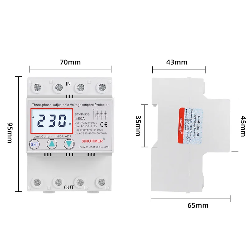 STVP серии SINOTIMER бренд автоматическая защита от перенапряжения и пониженного напряжения подходит для 3-х фазный генератор с 380 В пер. тока, 50/60 Гц, Номинальный рабочий ток 50A или 63A или 80A или меньше нагрузки. Его основная особенность заключается в том, что когда цепь имеет перенапряжение или Низковольтное напряжение, проблемы с током, продукт может немедленно отключить источник питания для защиты электрооборудования от повреждения, кроме того, протектор может автоматически включать источник питания, когда напряжение цепи возвращается к нормальному.